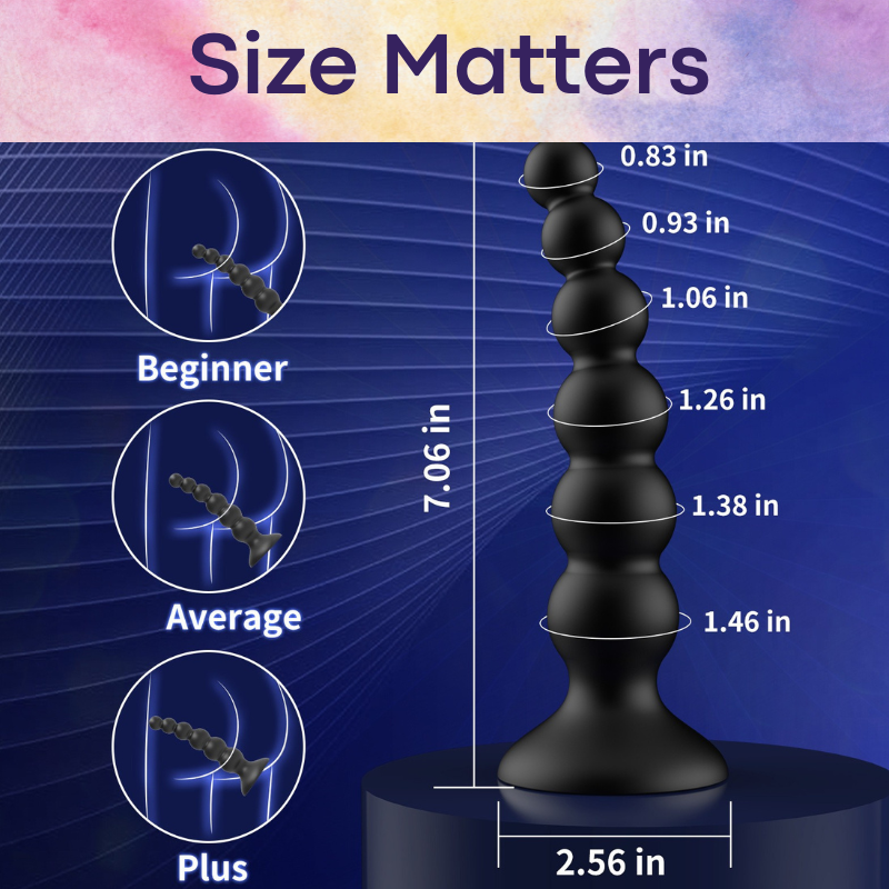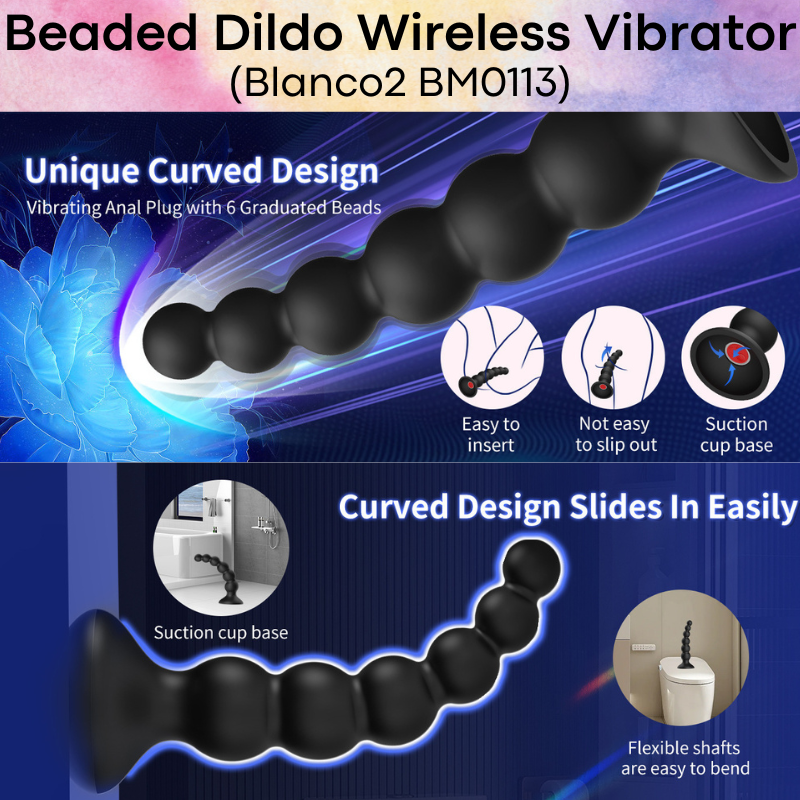 Made of ABS. Beaded dildo with suction pad. Prostate massager, and use as dildo manually too. 9 vibra mode. Control manually or with app (Android/IOS). Different bead sizes, great for beginner or pro users.