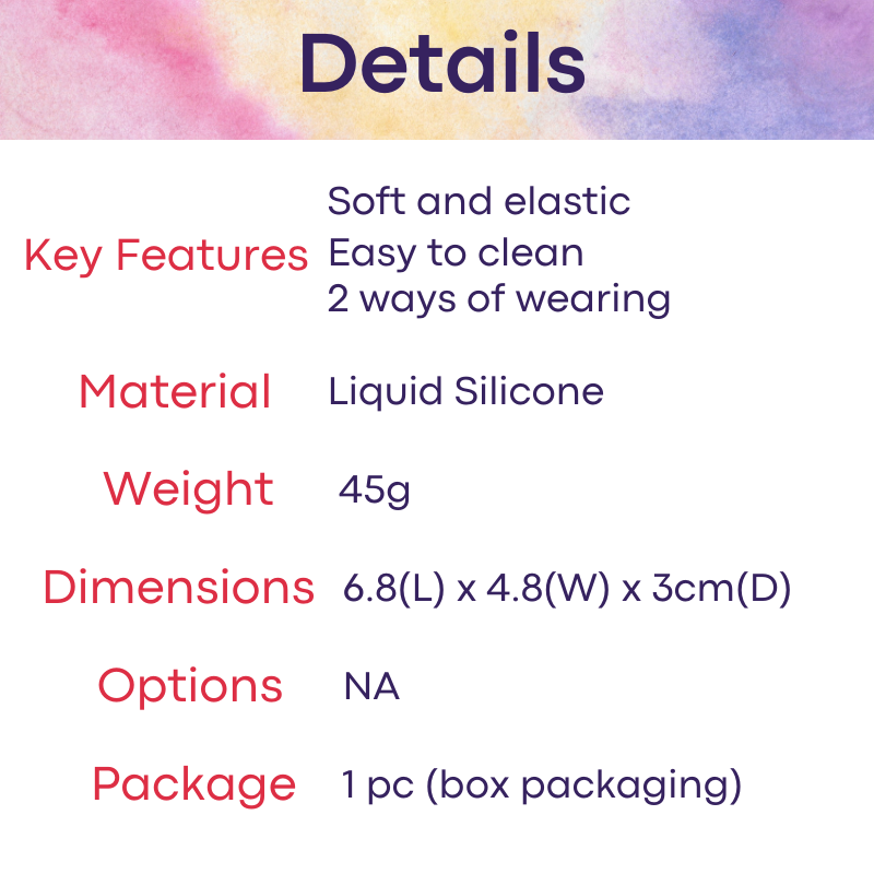 Made of liquid silicone. Elastic with an all-round grip at the base of the shaft, and the two jewels. Two modes of wearing, one at the shaft head, and second method is at the base of shaft.