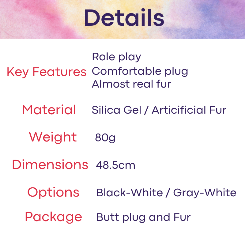 Made of silicon (butt plug) and artificial fur. Turn into a sexy foxy with a 41cm furry tail.
