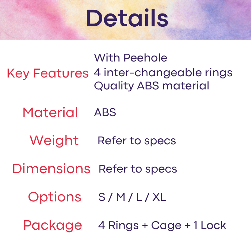 To get an estimation, 1. Check the ring size that fits the top base of penis to below scrotum. 2. Check if cage length can fit penis (non erect state). If unsure, welcome to check out samples in-store. Message for booking of appointment.