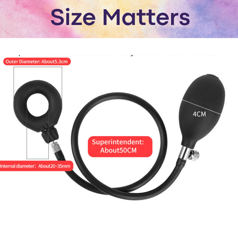 Made of silicon. For use on penis base or scrotum. Inflatable to right pressure. Detachabe from pump unit. Use with care. If in doubt on health issues, please consult medical doctor.