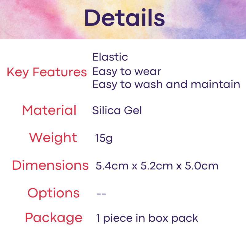 Made of silica gel. Elastic and highly stretchable. Easy to wash and maintain. Elephant trunk design makes it easy to wear and keep your jewels intact.