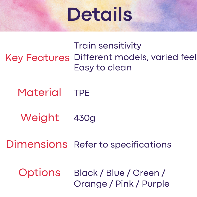 Made of TPE. Highly stretchable and comes in different sensation feel to train your penis for endurance and sensitivity.