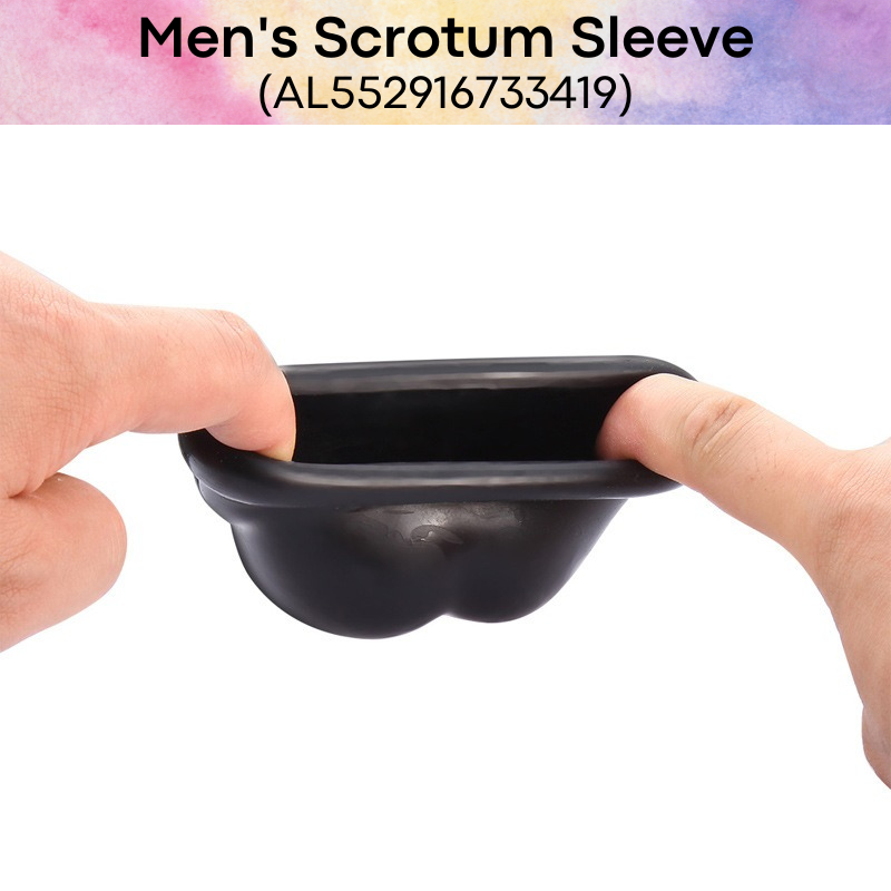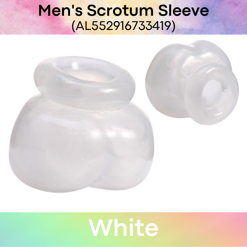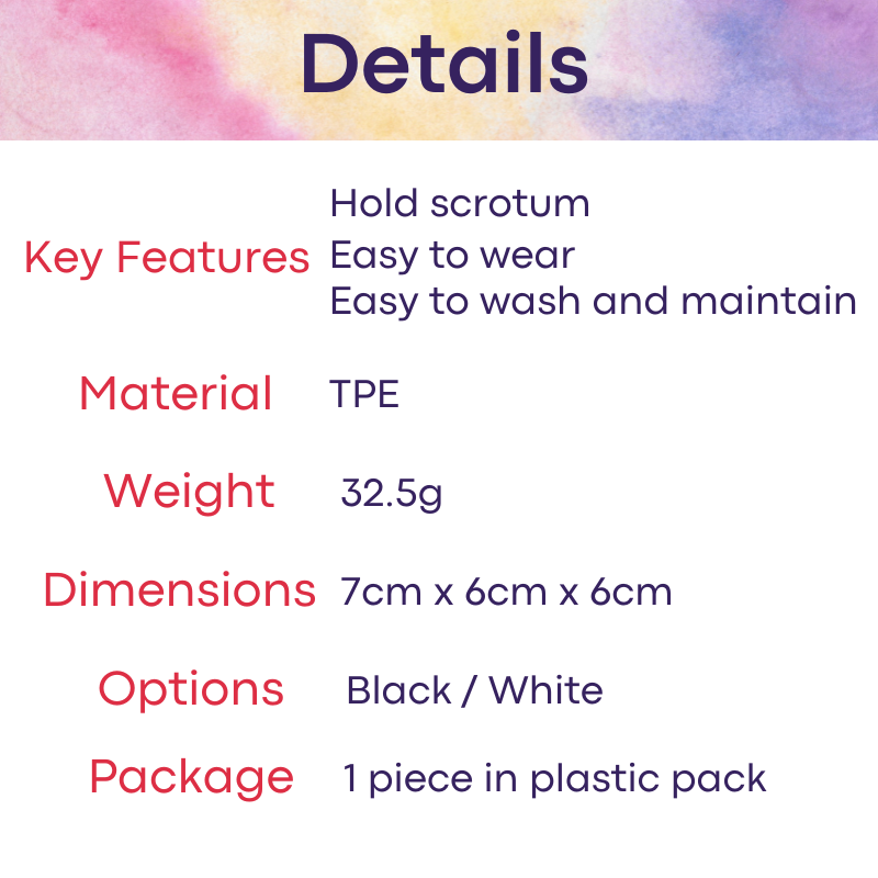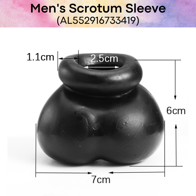 Made of TPE. Scrotum sleeve to keep your jewels close as you engage in "strenous activity". High elasticity, and easily washed and cleaned.