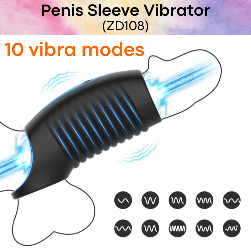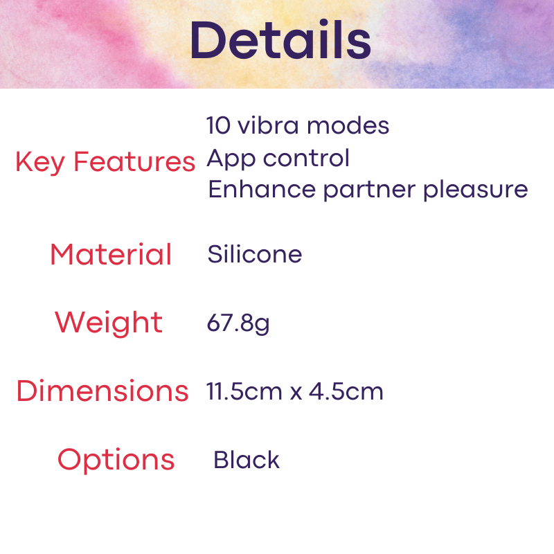 Made of silicone. Vibrating penis sleeve. 10 vibra modes. Ribbed body and 10 vibra modes enhance pleasure for your partner. App control for easy management once your tool is in.