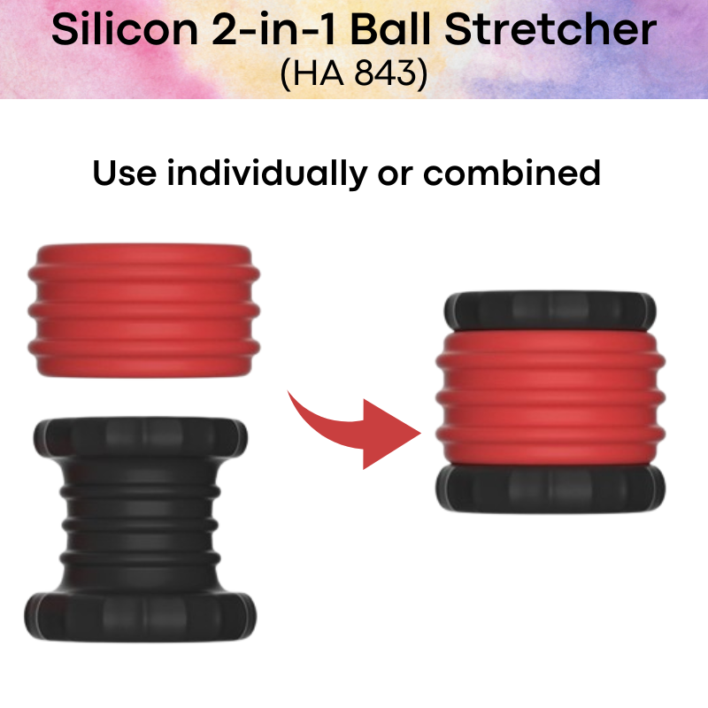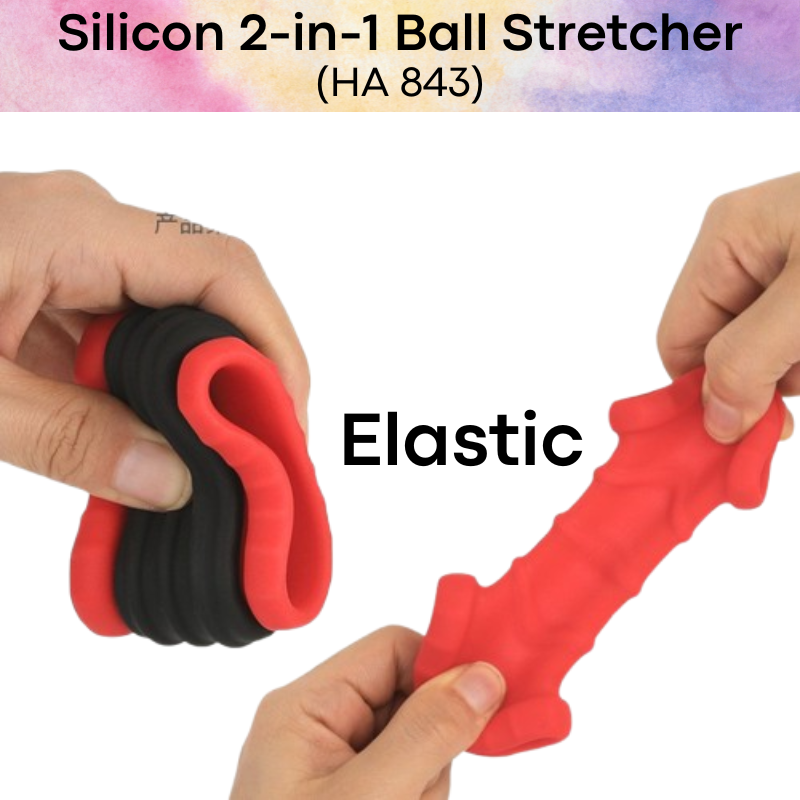 Made of silicon. 2-in-1 ball stretcher, used as a set or individually. Multi use and play. Elastic.