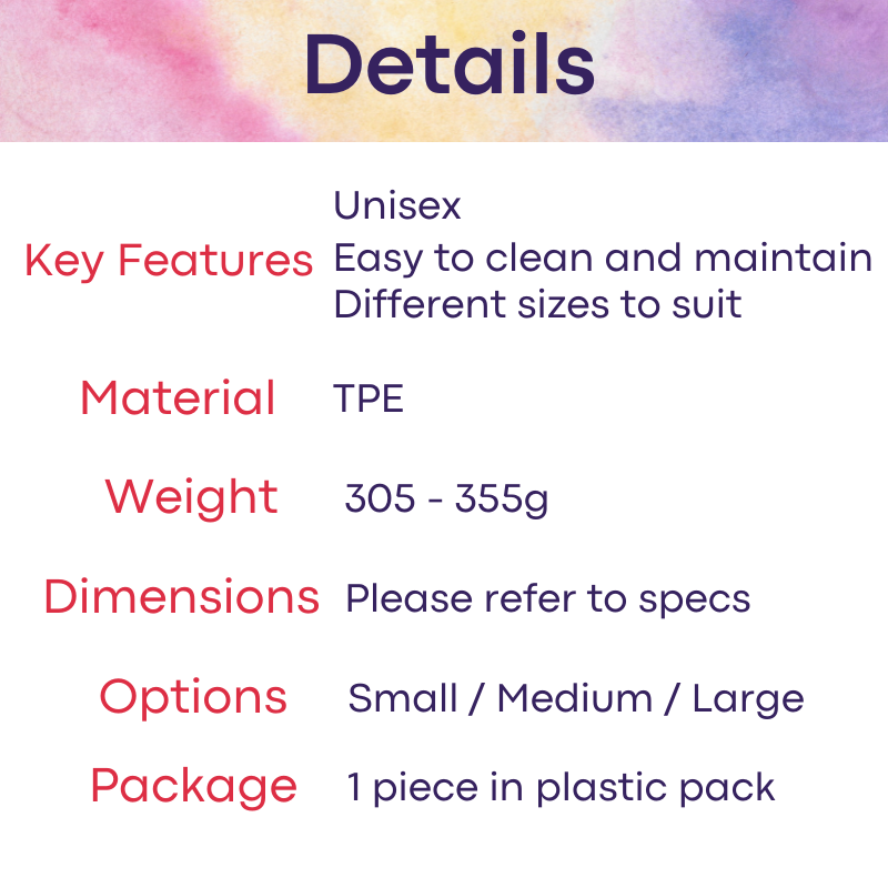 Made of TPE. Highly flexible. Comes in 3 different sizes to suit your needs. Whether for M-M, M-F, it goes both ways and liven up bedroom activities.