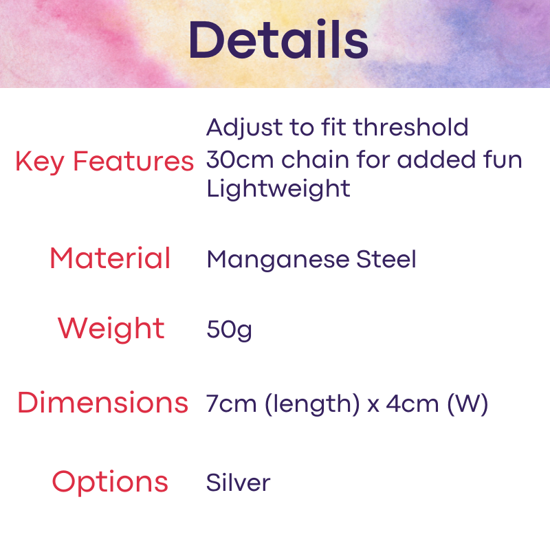 Made of manganese steel. Never experience pain again with the adjustable clamp, which goes up to 1.2cm wide. Adjust to suit your threshold. Simple squeeze on the lever and tighten the screw. Added silver chain for extra fun extra kink.