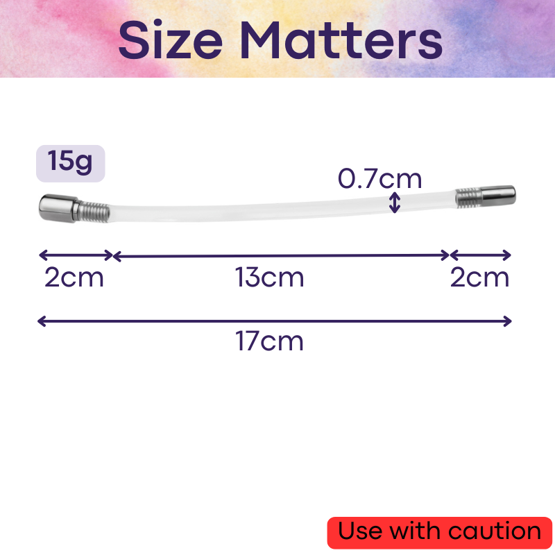 Screw and screwhead made of stainless steel 304. Tube made of silicone. Used with compatible chastity cage. If unsure of compatibility, message us.