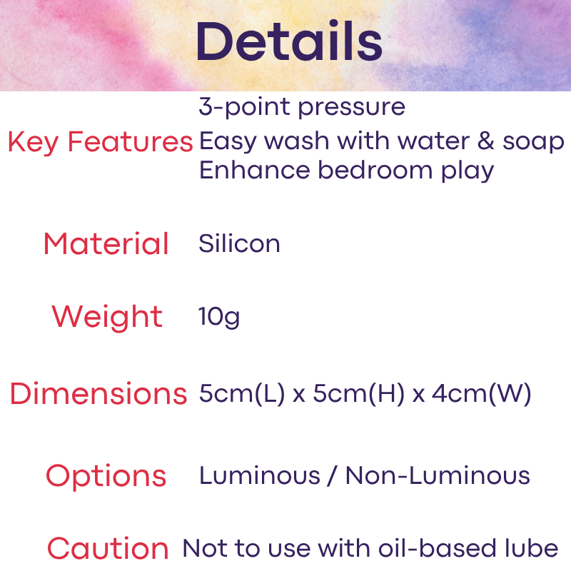 Made of silicon. 3-point pressure point penis ring. Holds up your jewels in place. Elastic. Easy to wash with just water and soap.