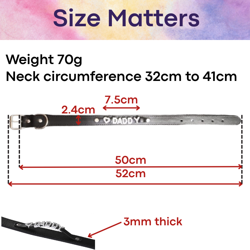 Made of PU. Adjustable belt loop for easy fit. Suitable for neck circumference 32cm to 41cm. Great for roleplay.