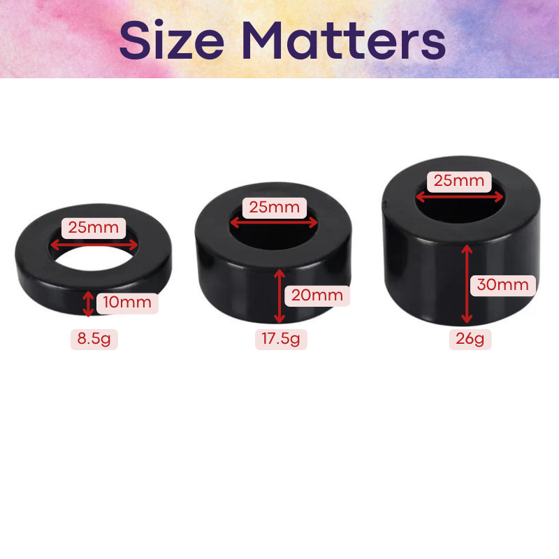 Made of silicon. Comes in set of 3 different sizes to suit your needs. Start with 1cm wide ring before moving on to 2cm, 3cm wide ring.