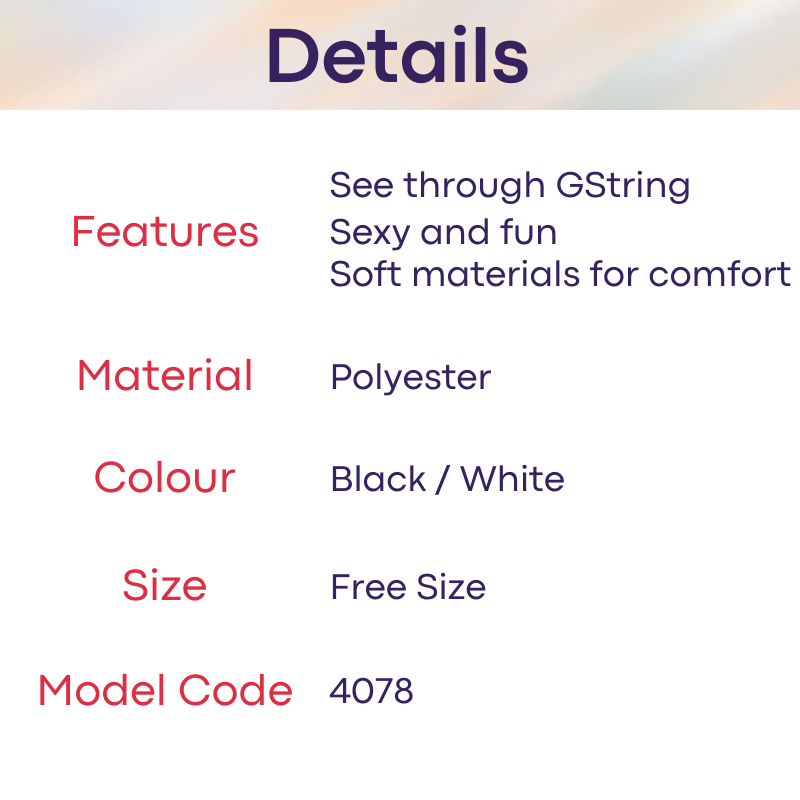 Made of polyester,highly stretchable. With GString at back, and see through pouch in front, up the excitement with this almost bare piece!