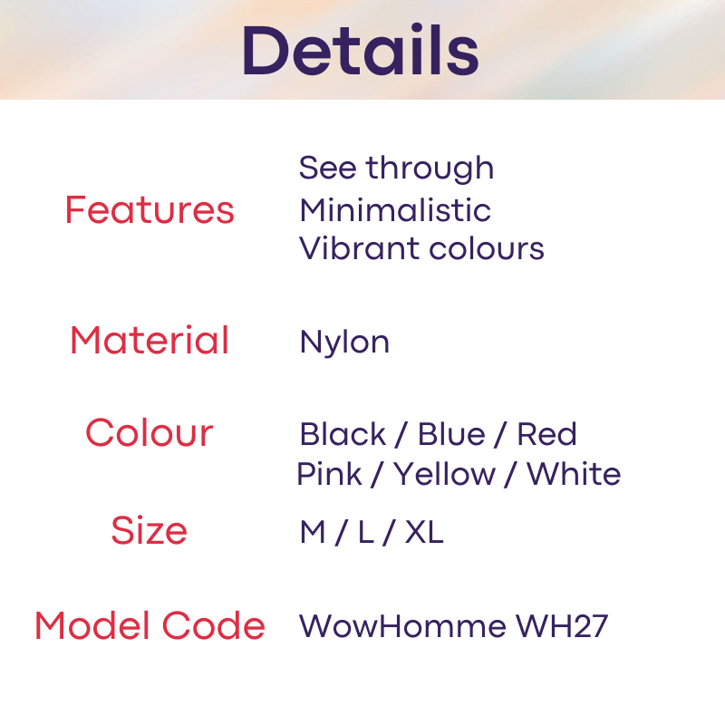 Made of nylon, with only single strap front and at the back. As minimalistic as it can be, enhanced with see through effect.