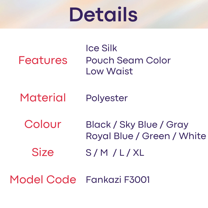 Made of polyester. 3D contoured pouch together with pouch seam color contrast to bring out the best in you. Ice silk touch and feel.