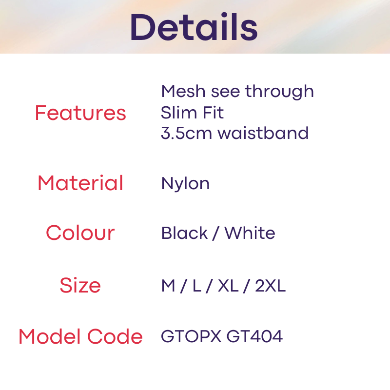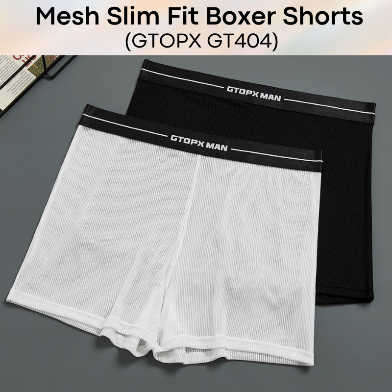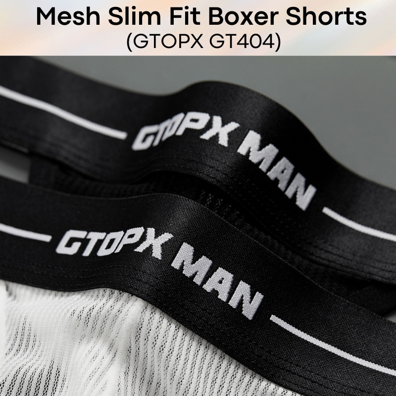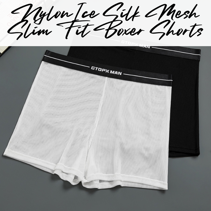 Made of nylon. Ice silk comfort. Mesh see through. Slim fit boxer shorts. 3.5cm waistband.