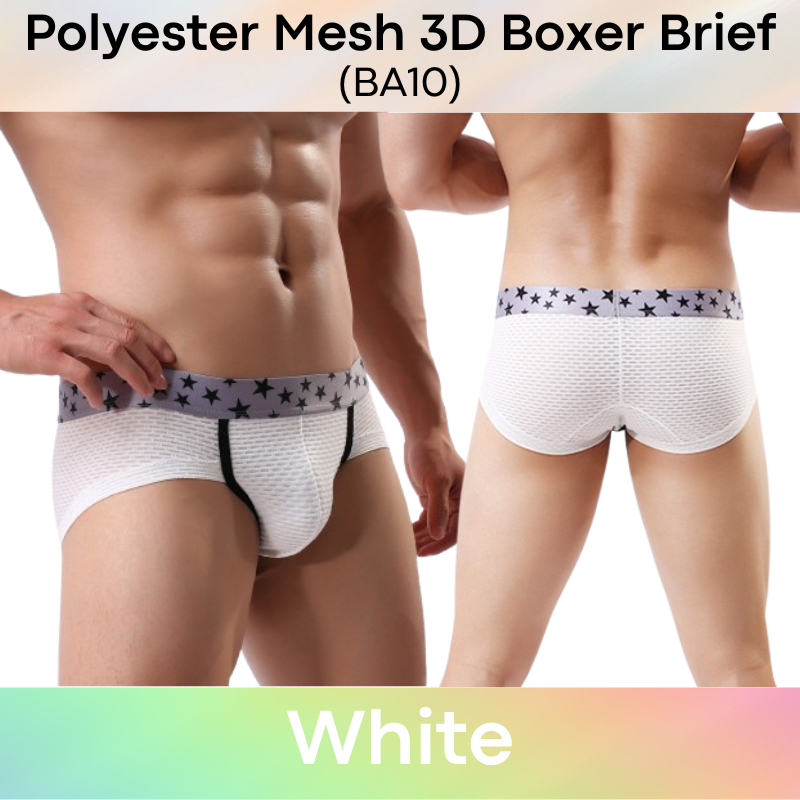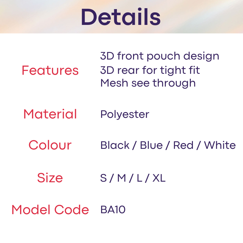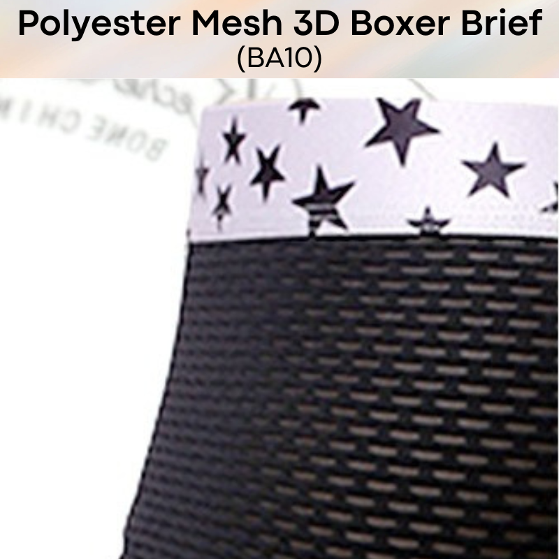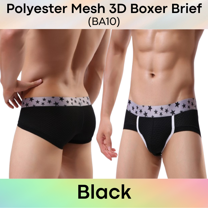Made of polyester. Mesh see through. Star print waistband. 3D front design to accentuate your assets. 3D rear design for close fit. Great for down parkers.