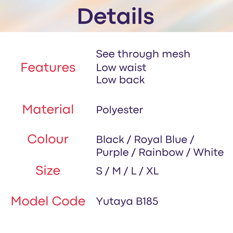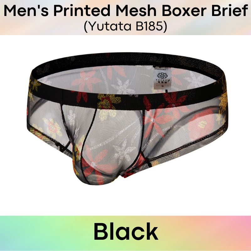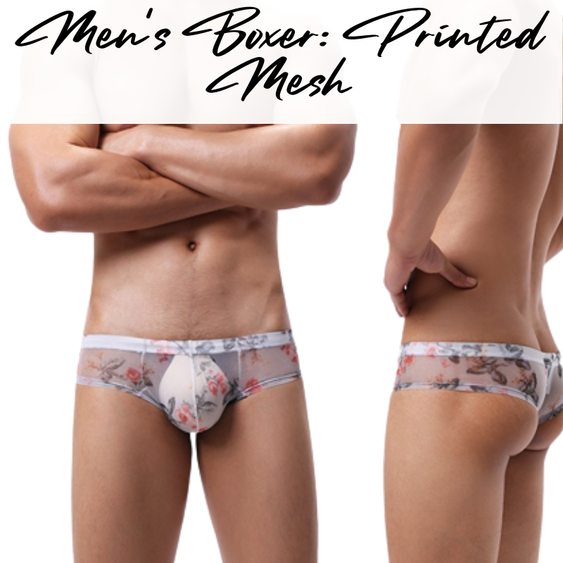 Made of polyester. Mesh see through, with floral printed design. Ultra low boxer brief.