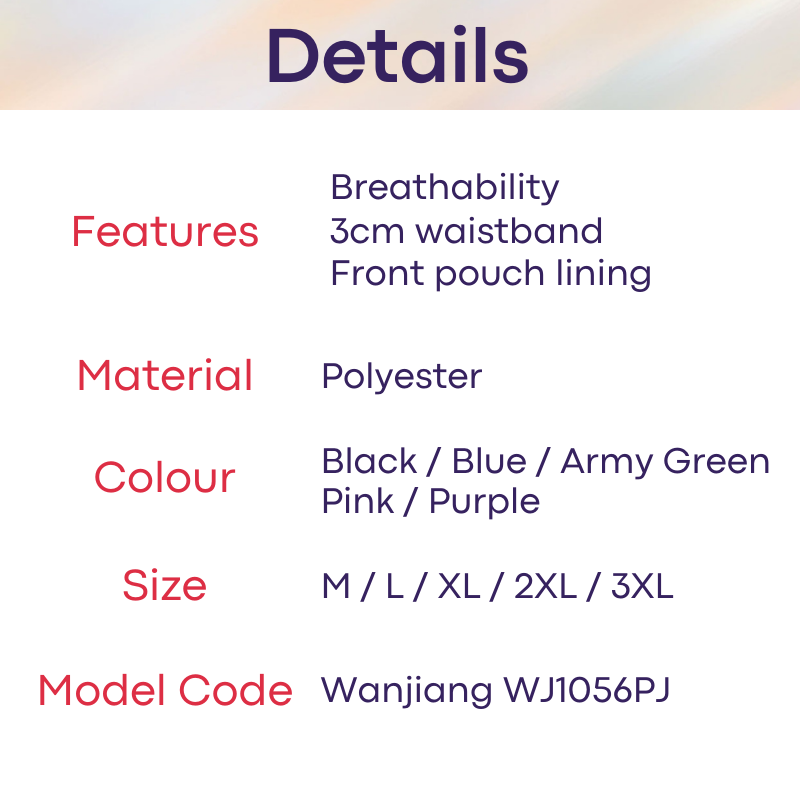 Made of polyester. Woven polyester for cool comfort, great breathability and quick dry. Inner lining pouch to minimise accidental stains
