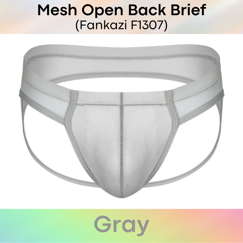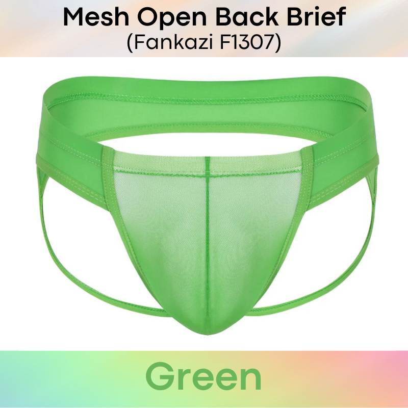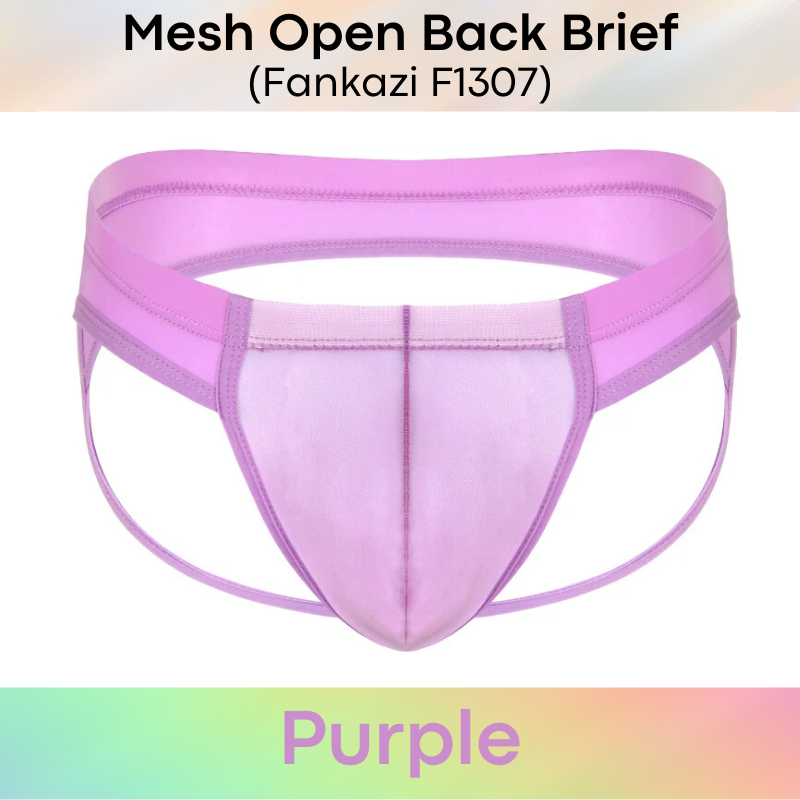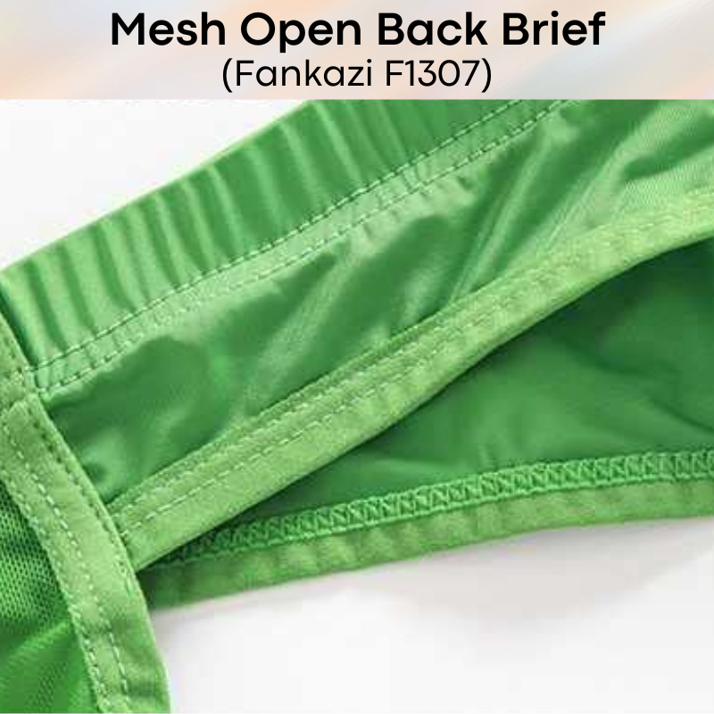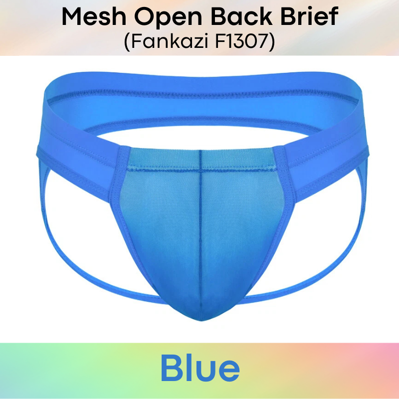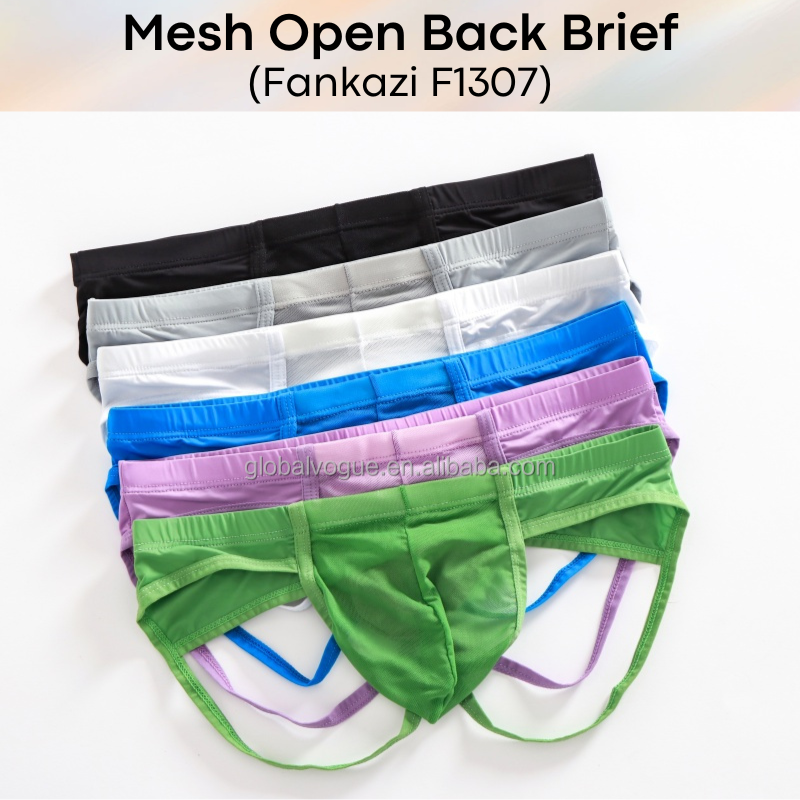 Made of polyester. Mesh see through. Brief with rear opening to show off your posterior. Even if exposed, opaque rear top and sides merely show off a regular brief, hiding the mesh material beneath. 1cm bum strap for bare and sexy feel.