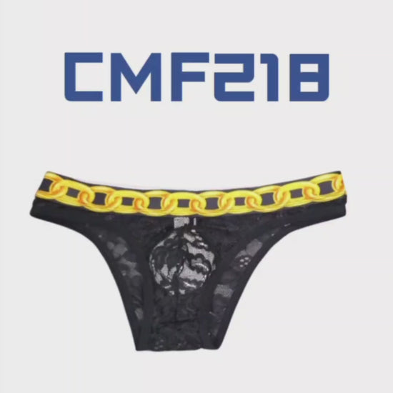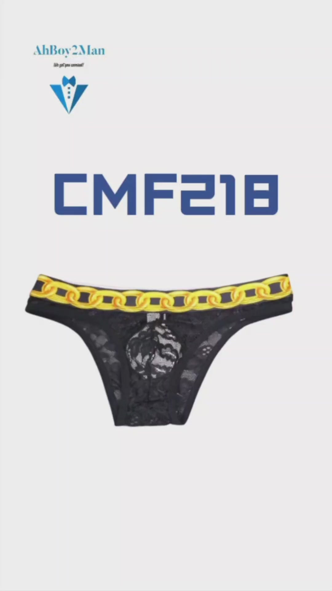 Made of nylon. Floral lace, sexy and see through. 3.5cm waistband with chain print design. Rear half brief, a cross between full brief and T Back to show off your posterior.