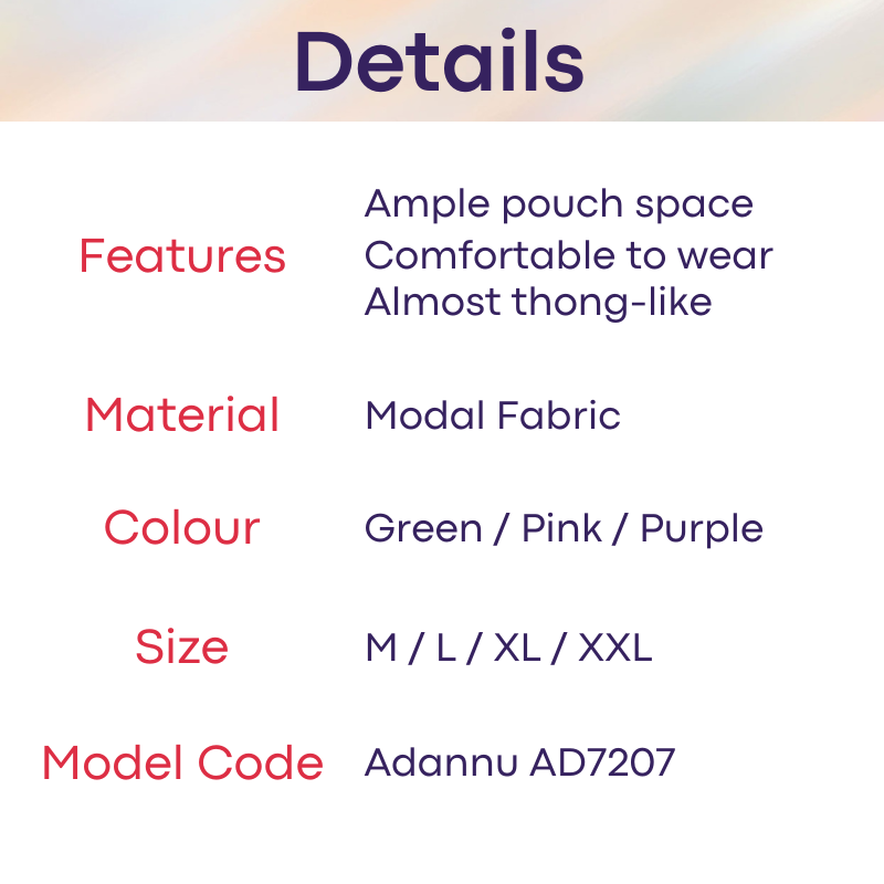 Made of modal fabric. Half brief, high back thong. Ample pouch space.