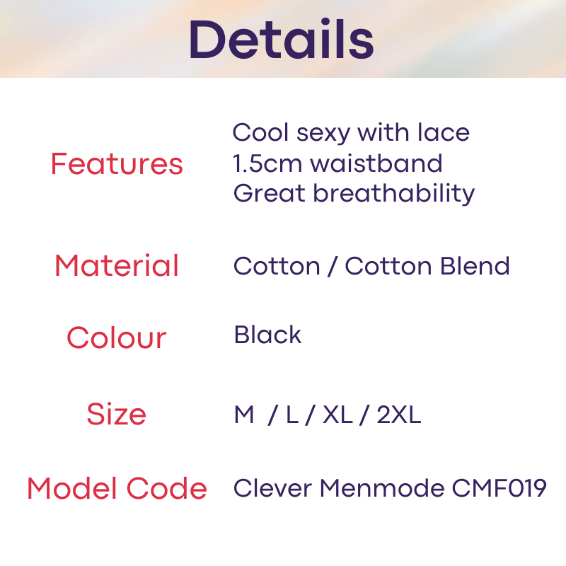 Made of polyester. Lace brief with a 1.5cm waistband. Highly breathable, sexy and fun piece.