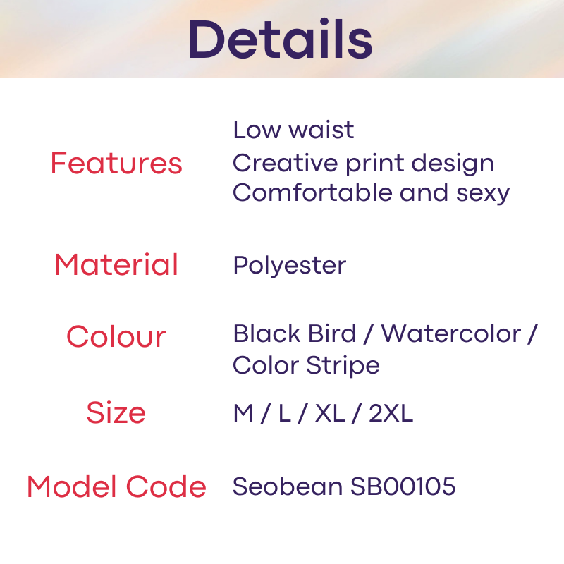 Made of polyester. Low waist and sexy wear. Creative graphic design, to suit your mood.