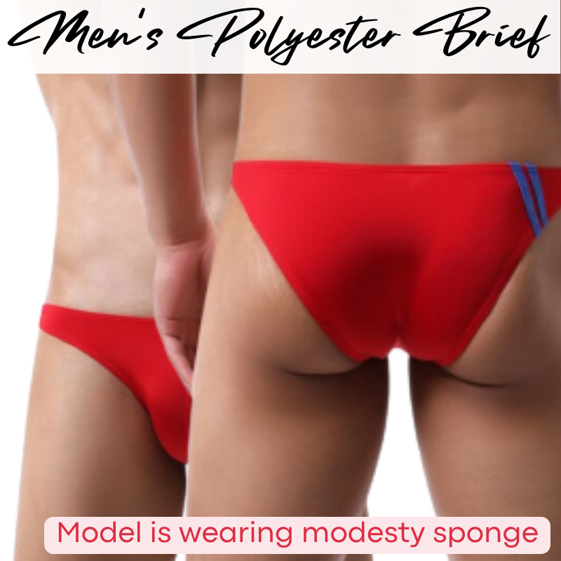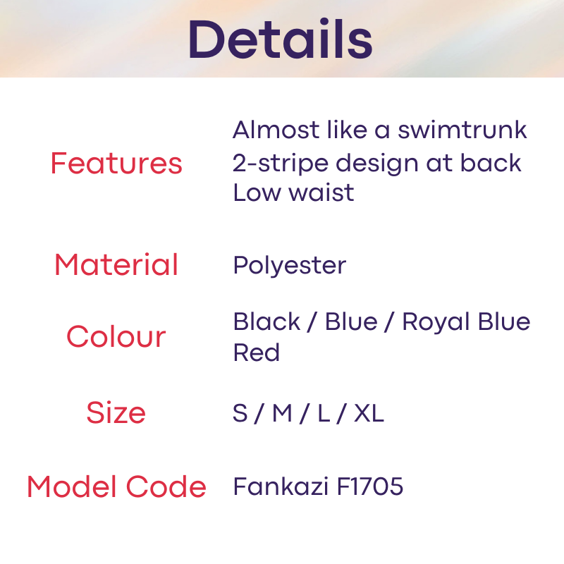 Made of polyester. Almost like a swim trunk, in terms of look and feel. 2-stripe design with a colour contrast.