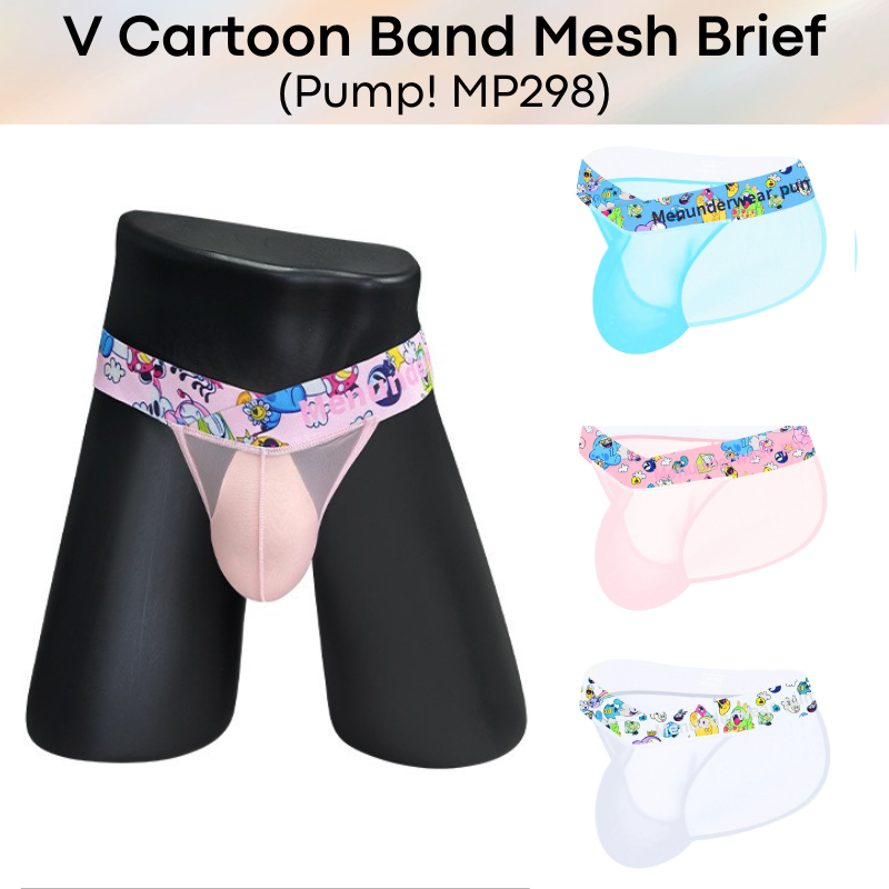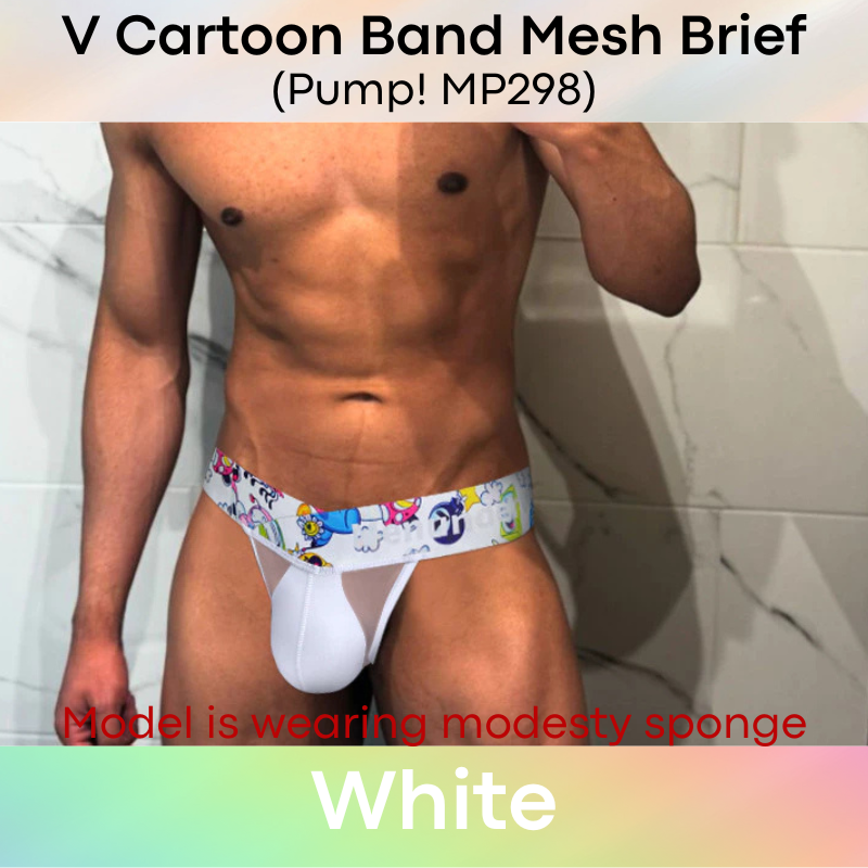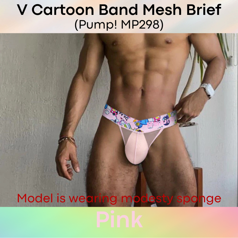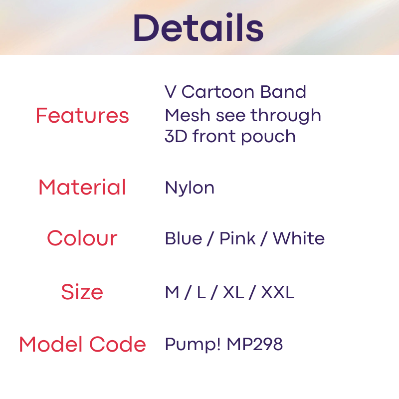 Made of nylon. Sexy and cute 4cm V-shaped waistband. Mesh see through. 3D front pouch.