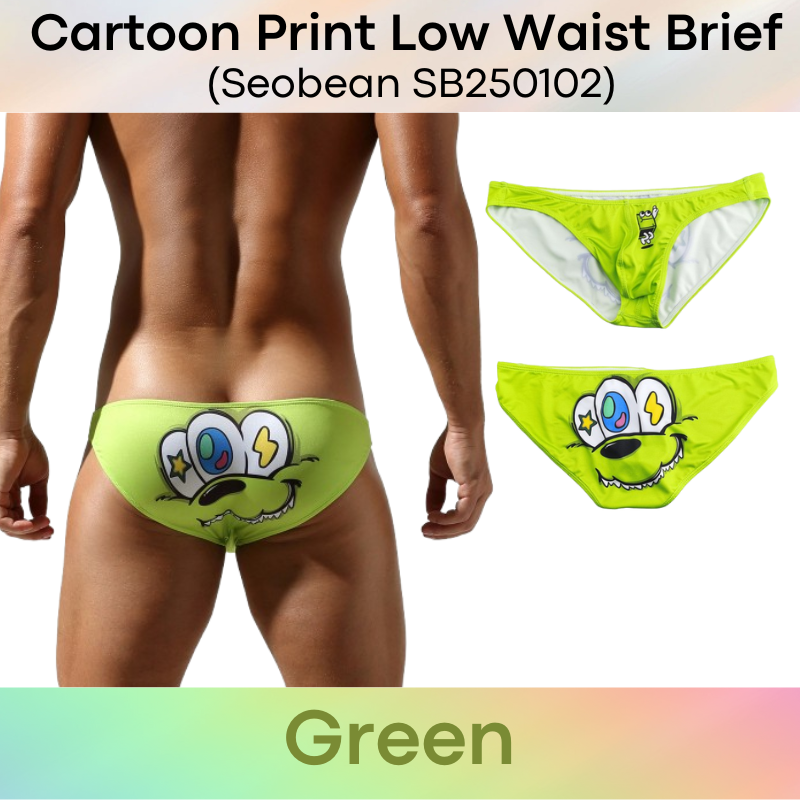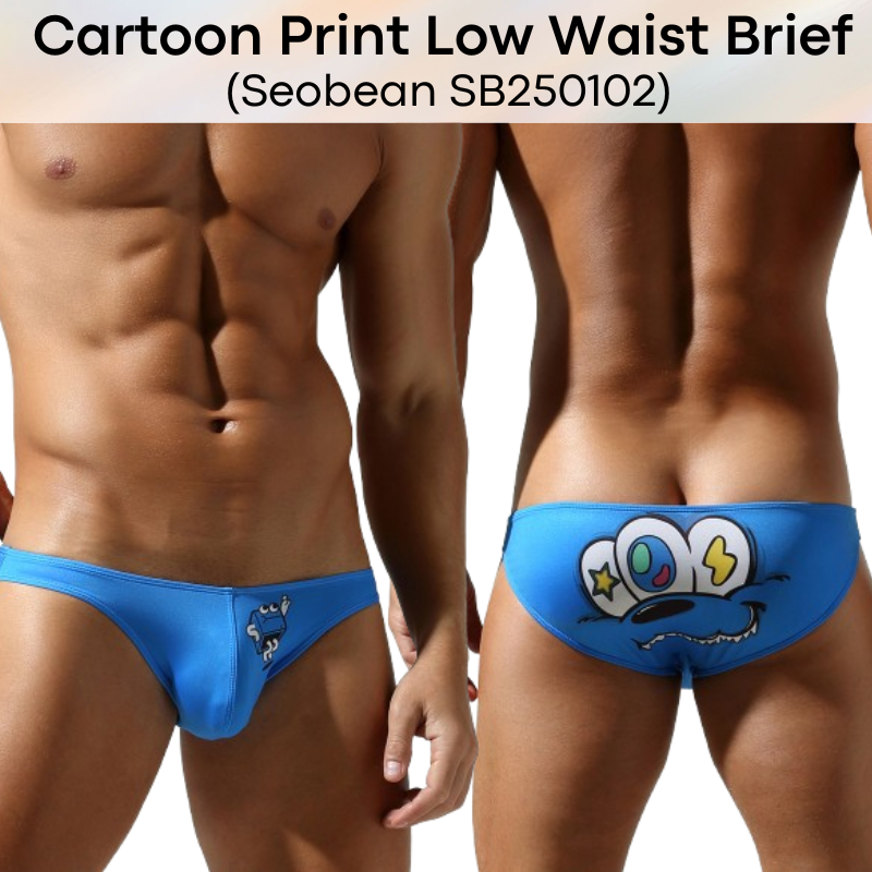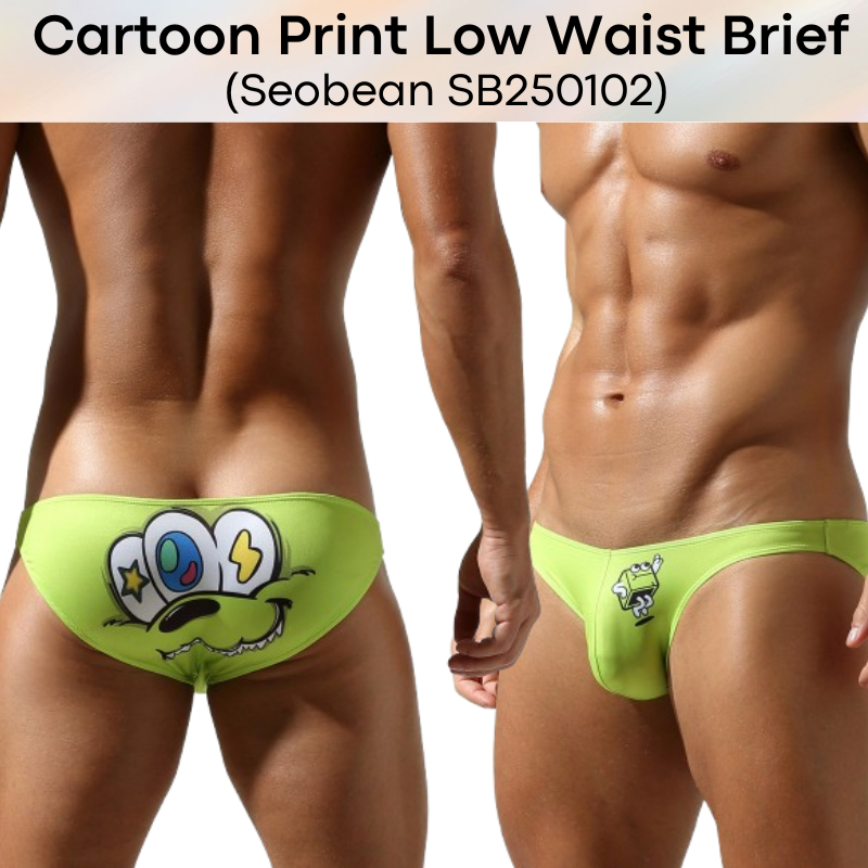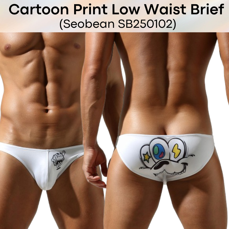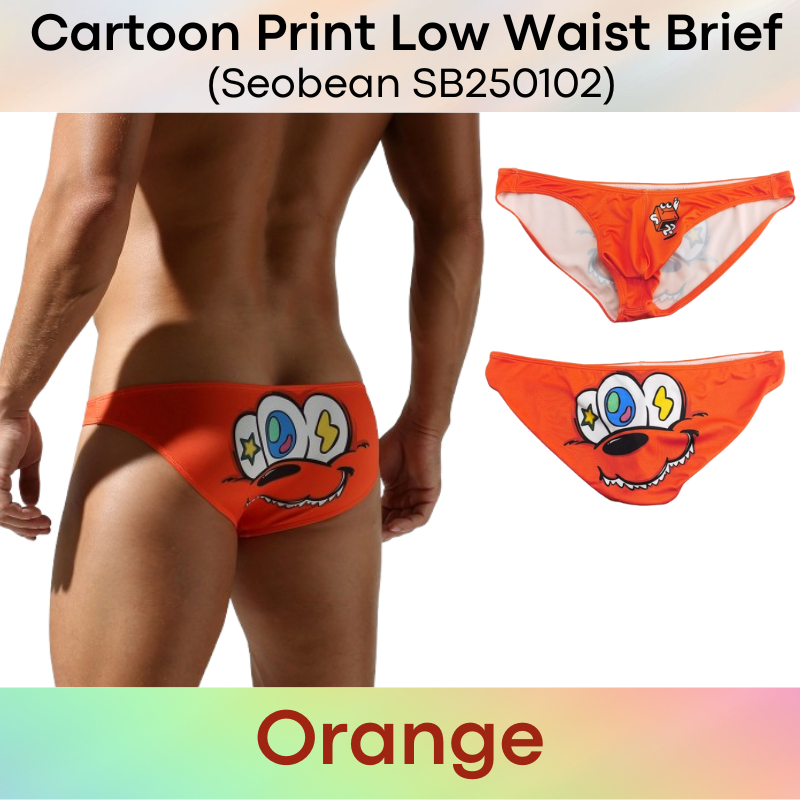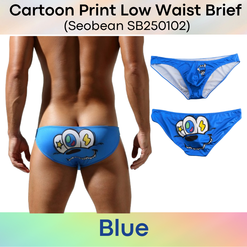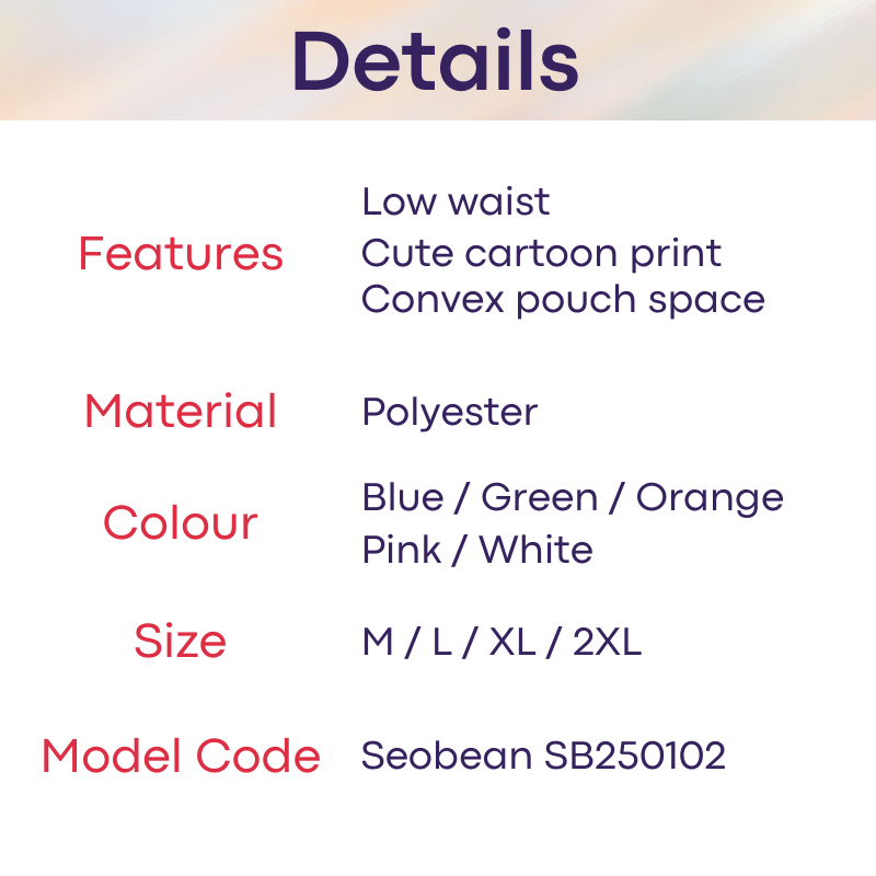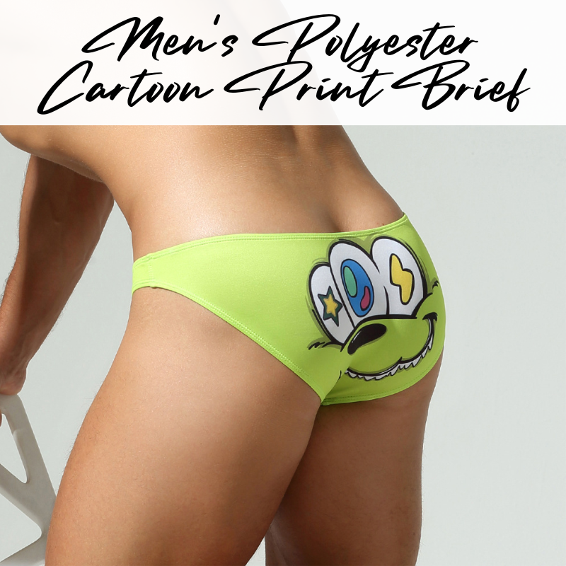 Made of polyester. Cute cartoon print brief. Convex pouch to bring out the best in you. For young and young at heart.