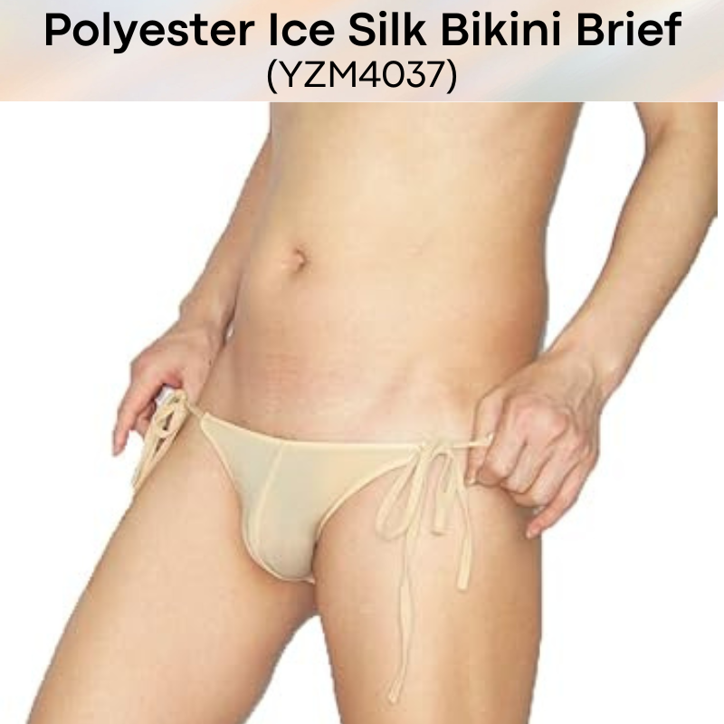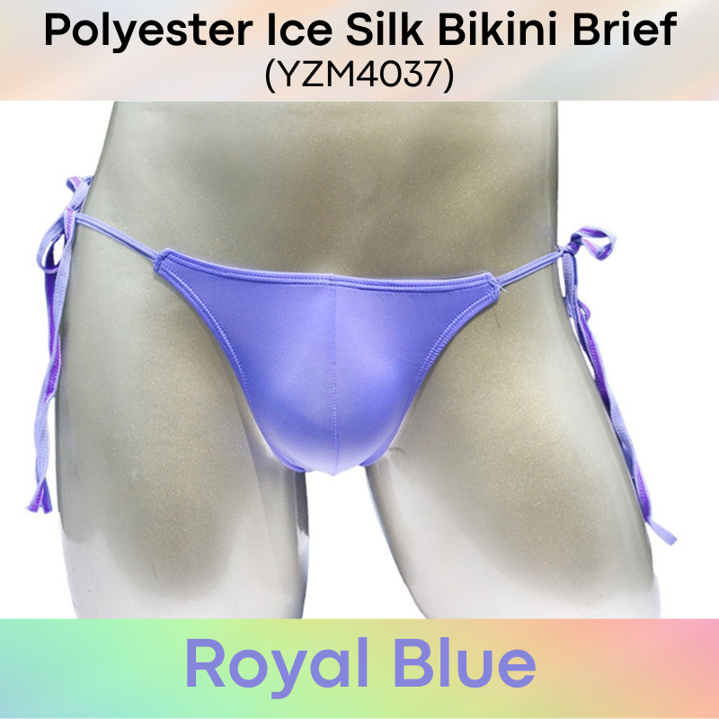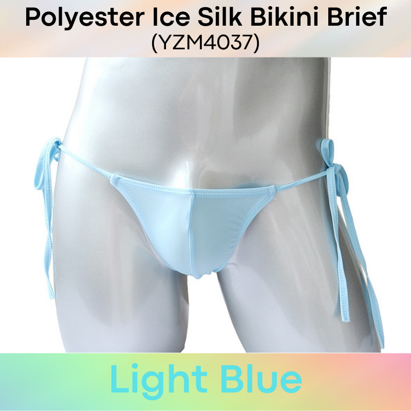 Made of polyester. Ice silk soft and thin. Front pouch design. Side bikini string tie (18cm per string per side). String measures 0.8cm wide. Over 15 colours to choose from. Free size, suitable for any body sizes.