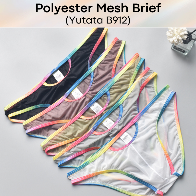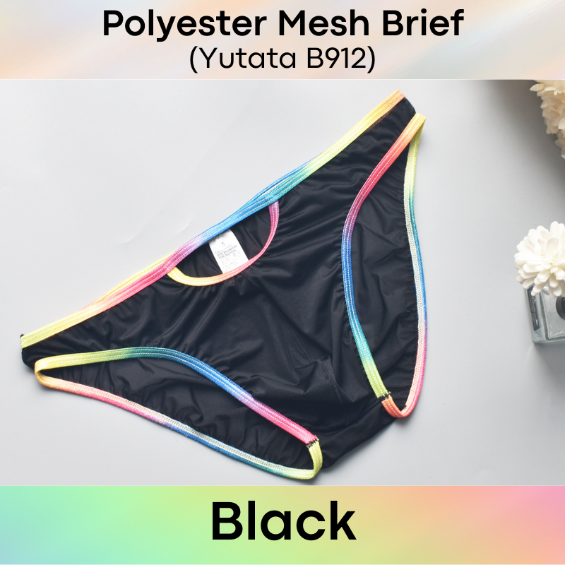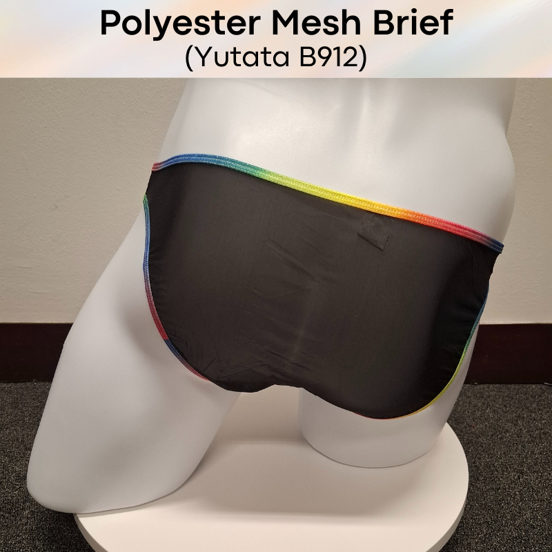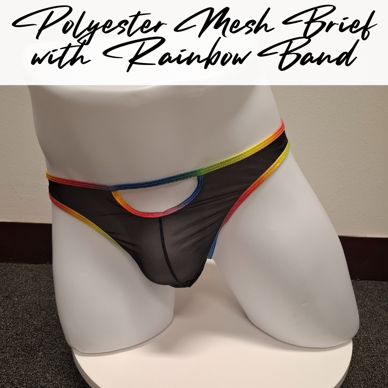 Made of polyester. Mesh see through, soft and thin. Pouch opening for easy access. Rainbow waistband and trimmings.