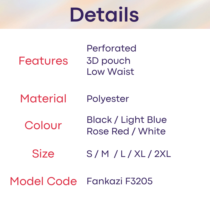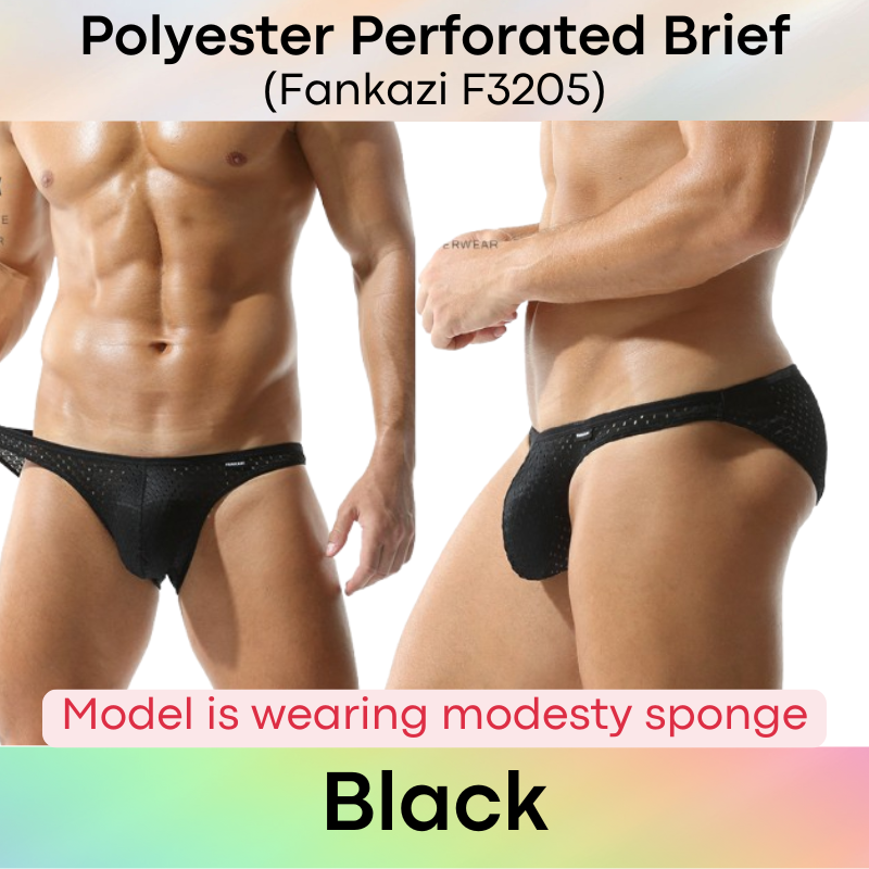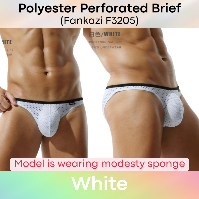 Made of polyester. Perforated patterned brief, with great breathability. 3D pouch to enhance your assets.