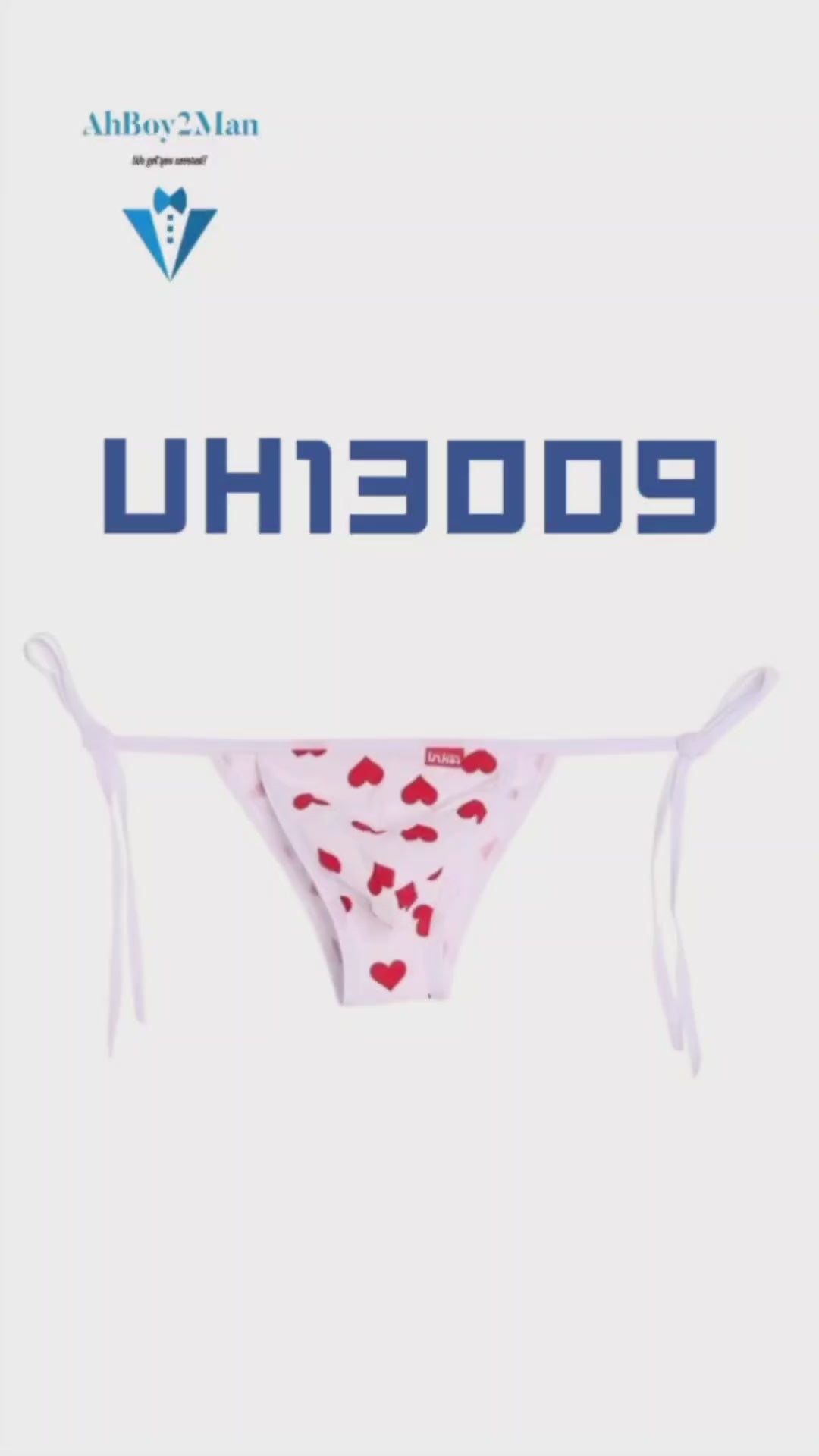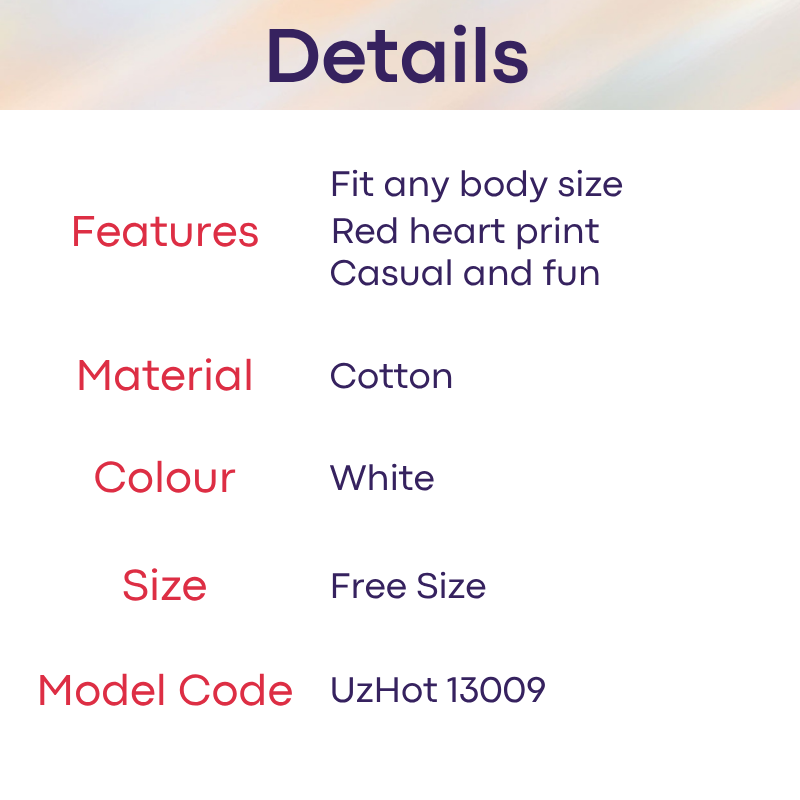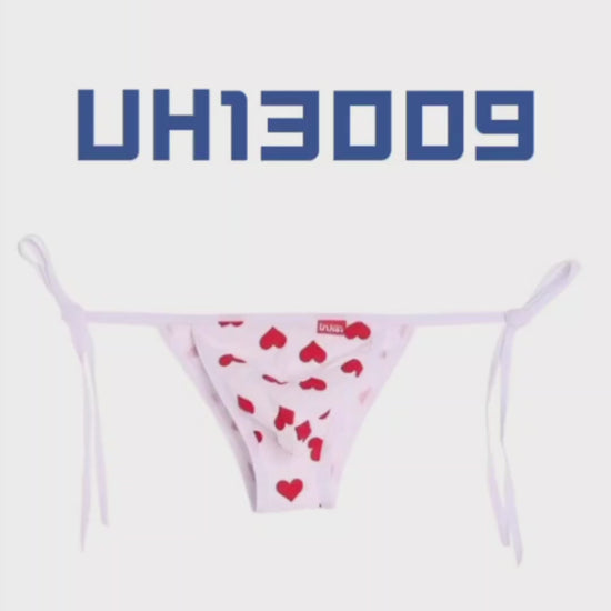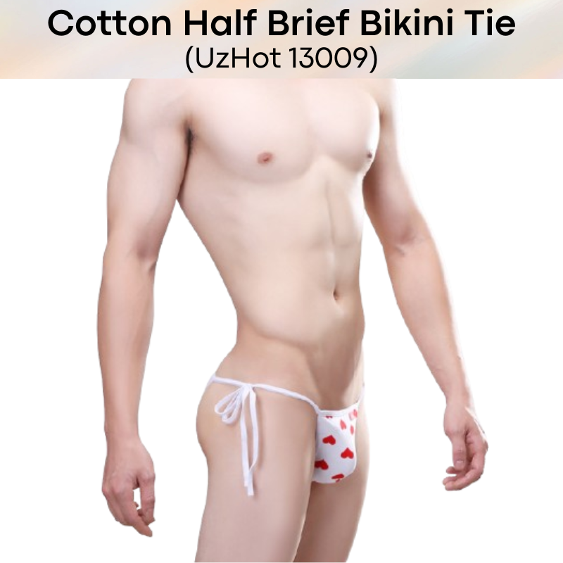 Made of cotton. Red heart print design. Half brief with bikini tie at both sides.