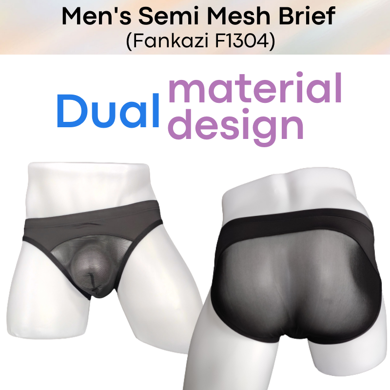 Made of polyester. Hybrid of cool polyester feel and mesh. Front and rear contour which marries with mesh, to create a sexy yet regular brief look.