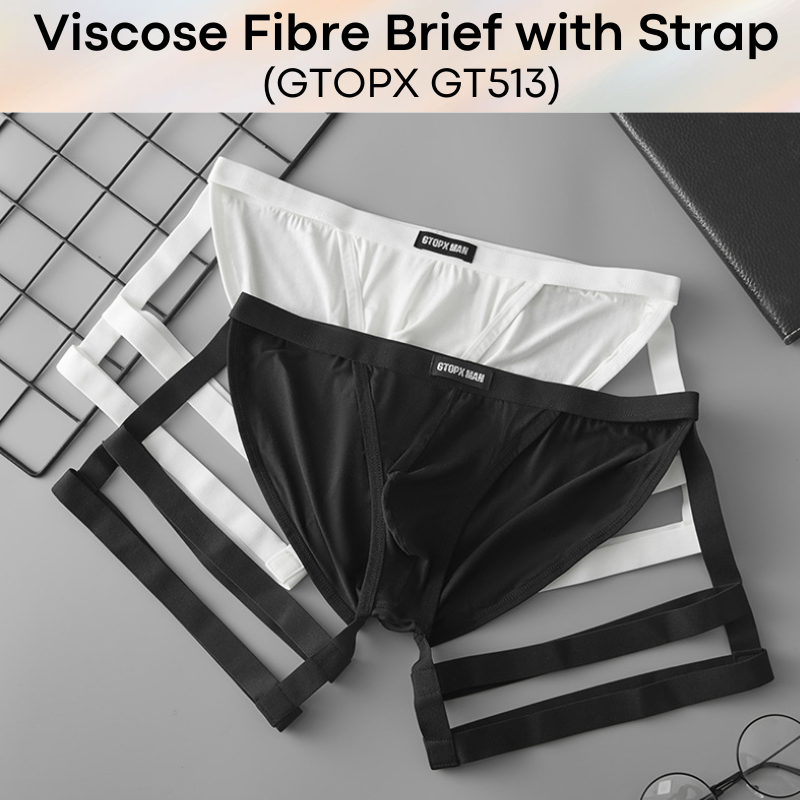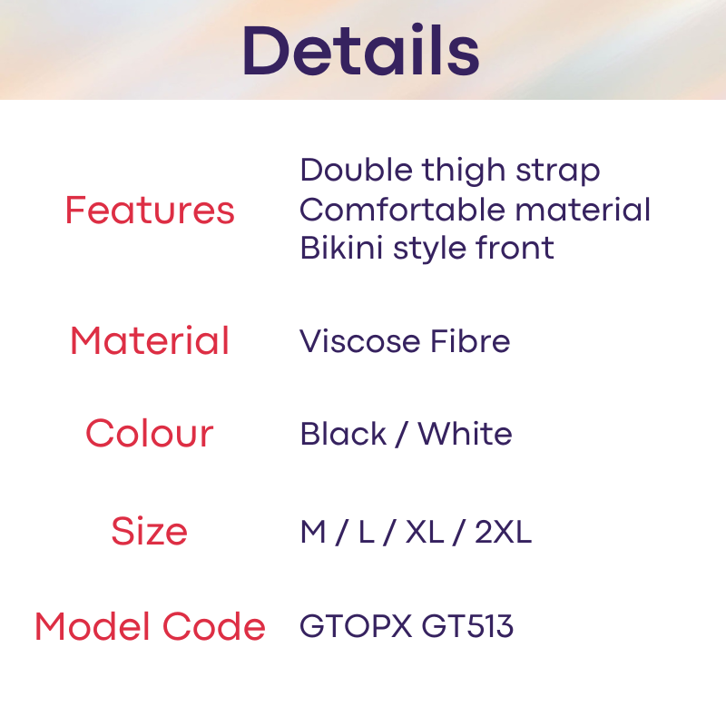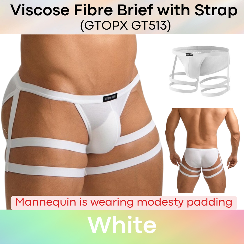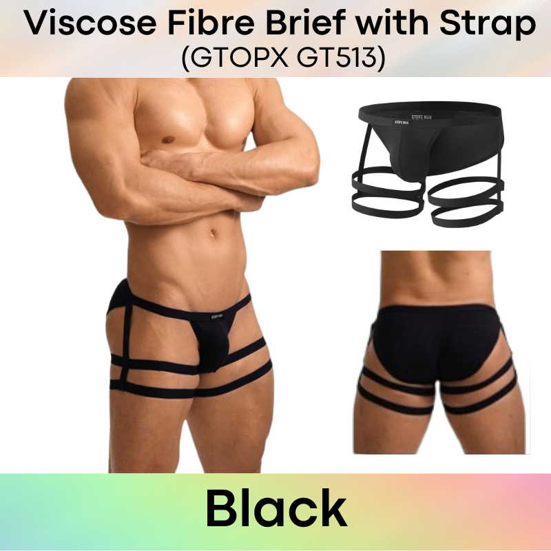 Made of viscose fibre. Full back brief, with bikini style front. Double thigh straps for extra sexiness.