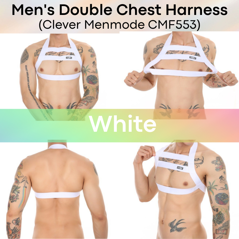 Made of nylon. Double chest strap, with a neck and back strap at the back.