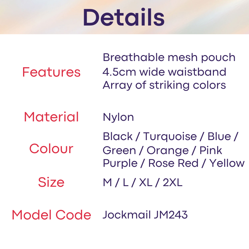 Made of nylon. Breathable mesh material for front pouch, gives it cool comfort whether for work, sports or play. Comfortable 4.5cm wide waistband.