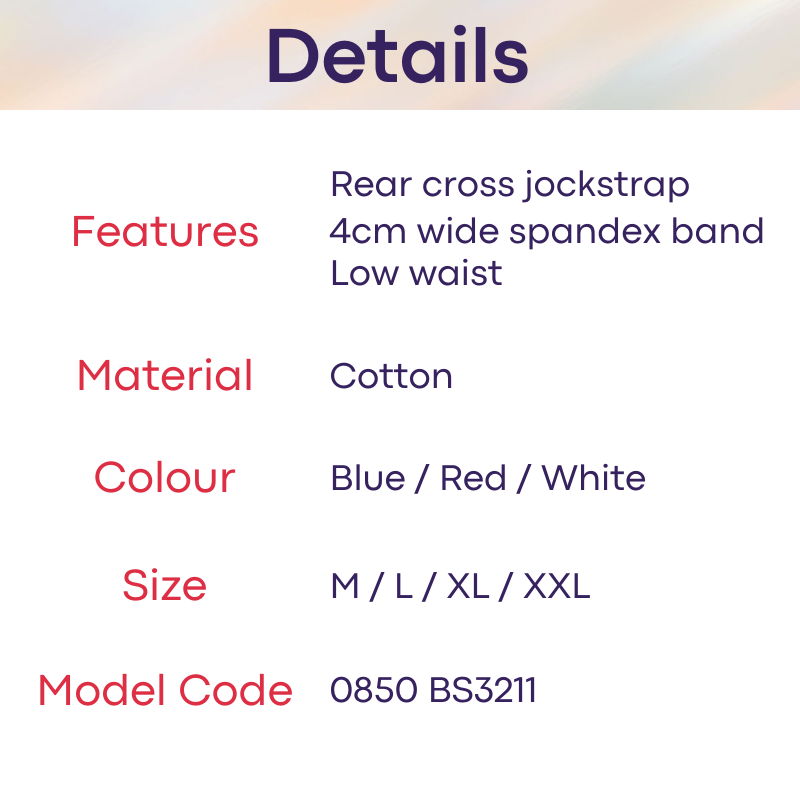 Made of cotton. Rear cross jockstrap. Cotton comfort. 4cm wide strap band.