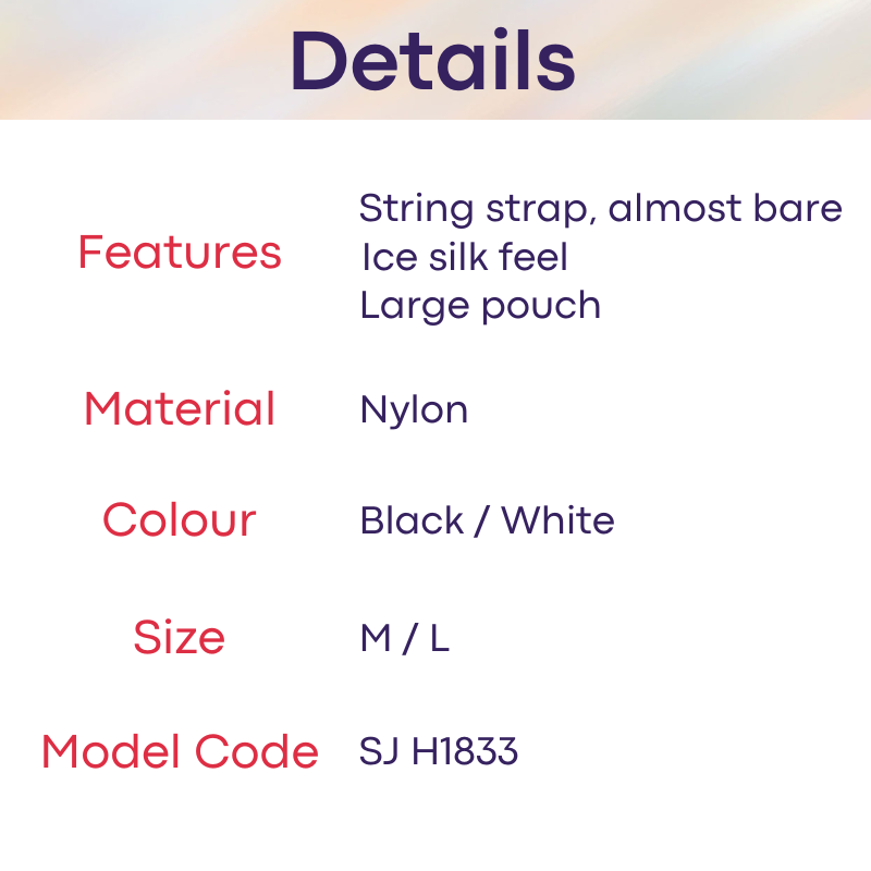 Made of nylon. Large pouch design (16cm H x 20cm W). String strap, semi transluscent, for extra sexy and bare feel.