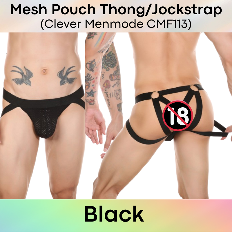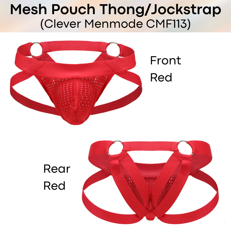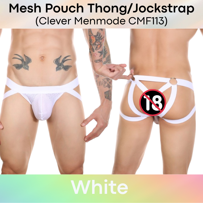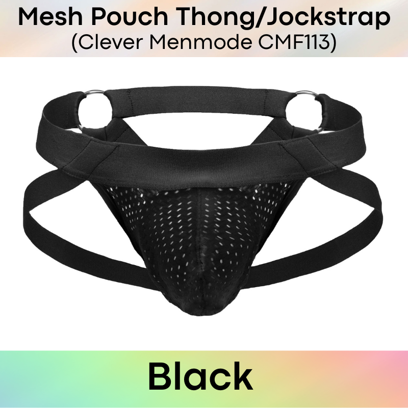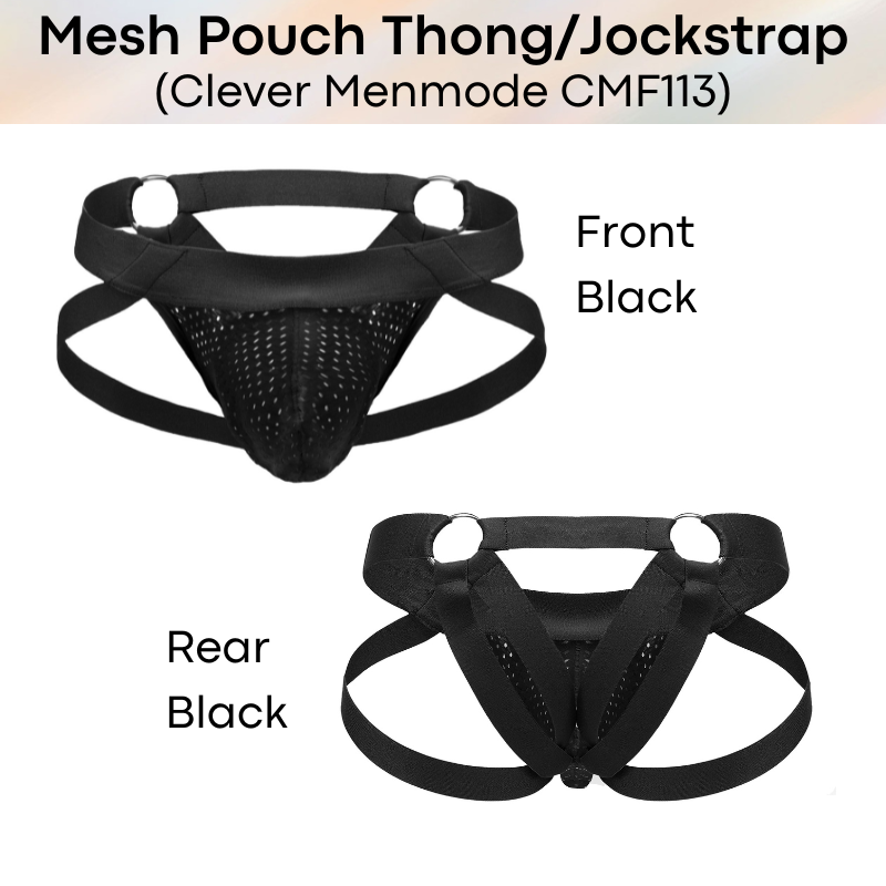 Made of nylon. Mesh pouch, great for down parkers. 3.5cm waistband with 2 rear metal rings. 2.5cm wide thigh and thong strap. Unique Y thong straps to add sexiness for play.