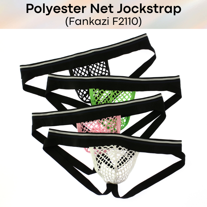 Made of polyester. Net pouch for visibility and breathability. 3.8cm waistband with a slim 2cm bum strap.