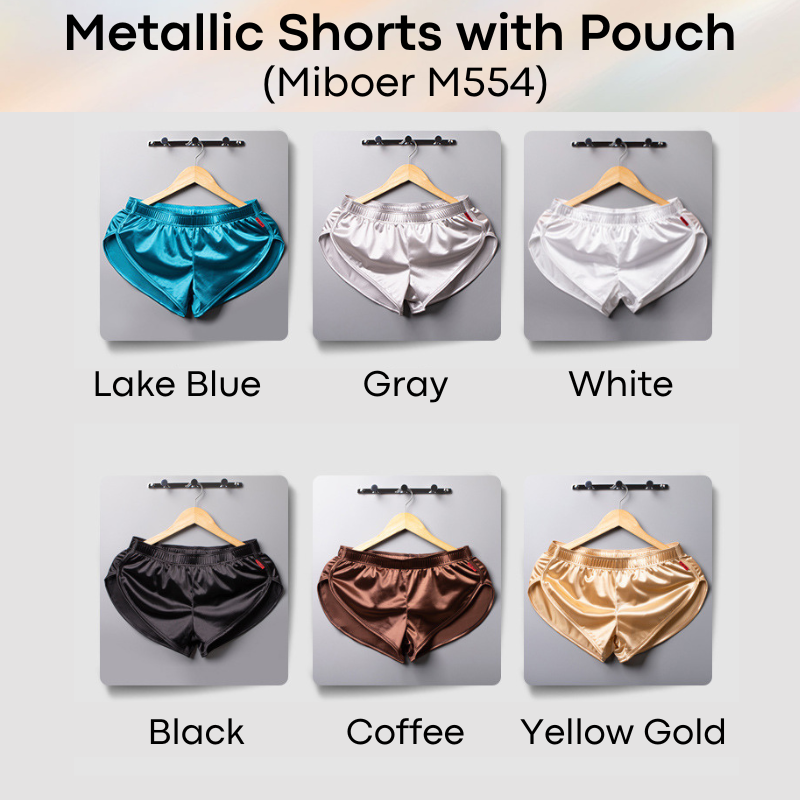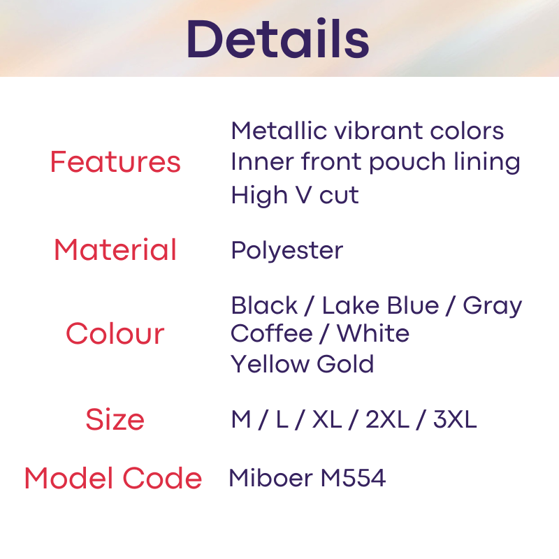 Made of polyester. Metallic vibrant colors, smooth and soft. Semi translucent. Comfortable to wear. Comes with inner front pouch lining. Great for sports/home.