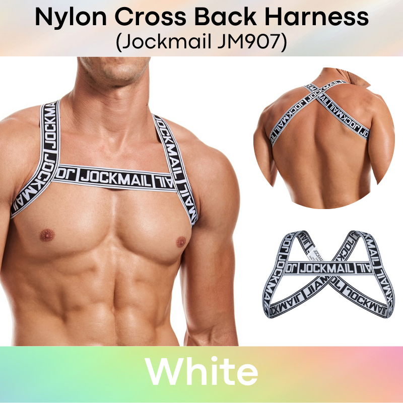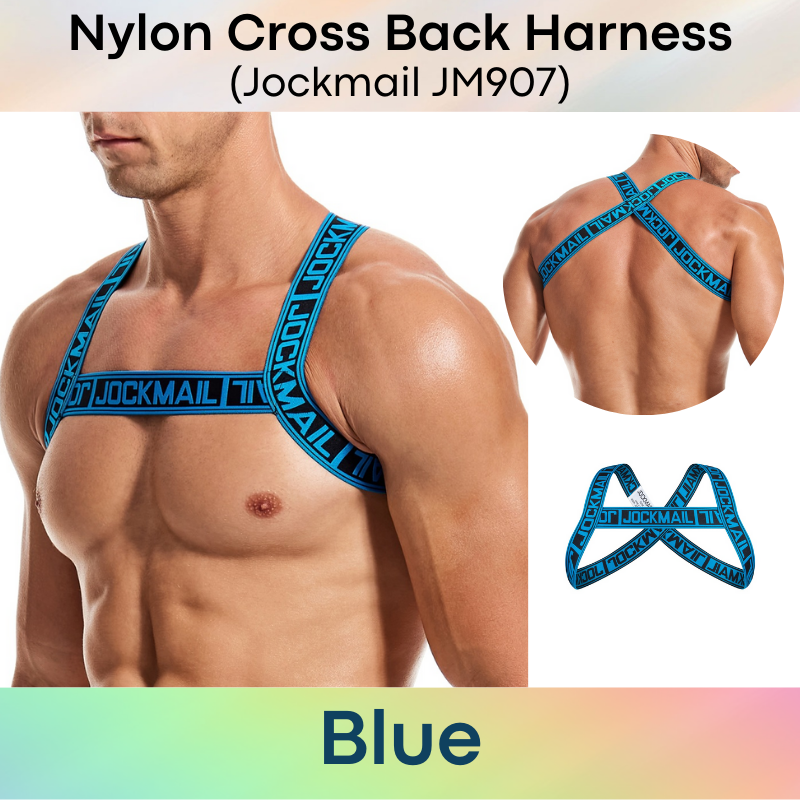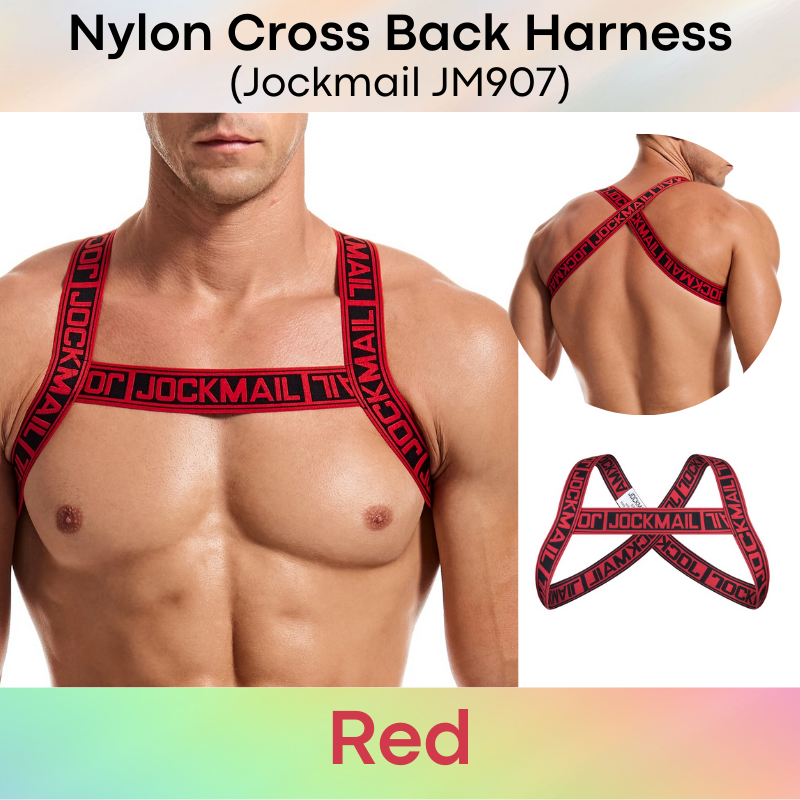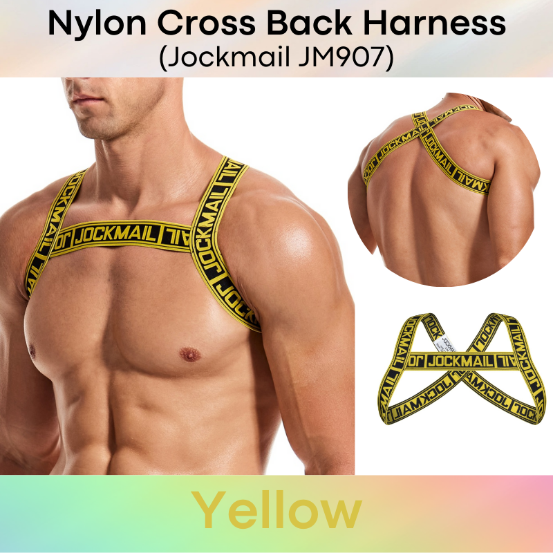 Made of nylon. Cross back style with front horizontal line to show off chest contour. Elastic, great for sports or fun wear.