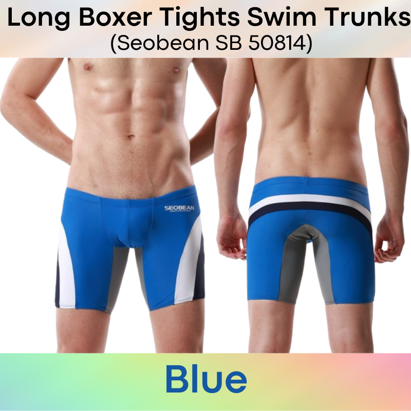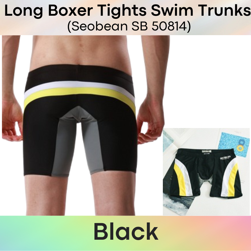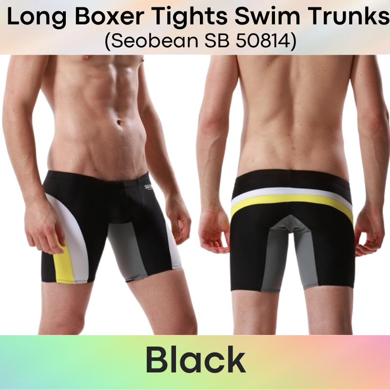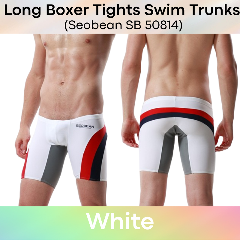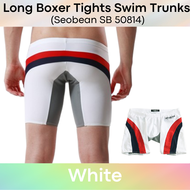 Made of nylon. Low waist, Long boxer tights swim trunks. Lines and insewn accentuate your assets and posterior.