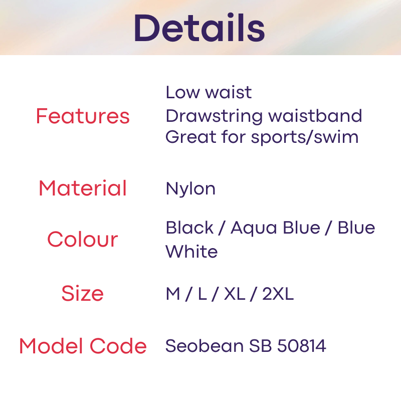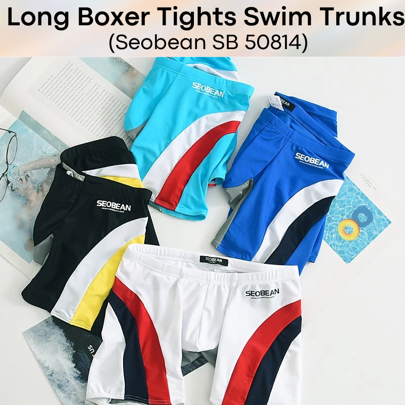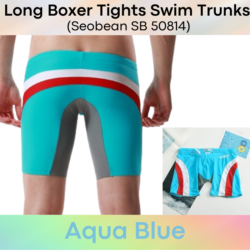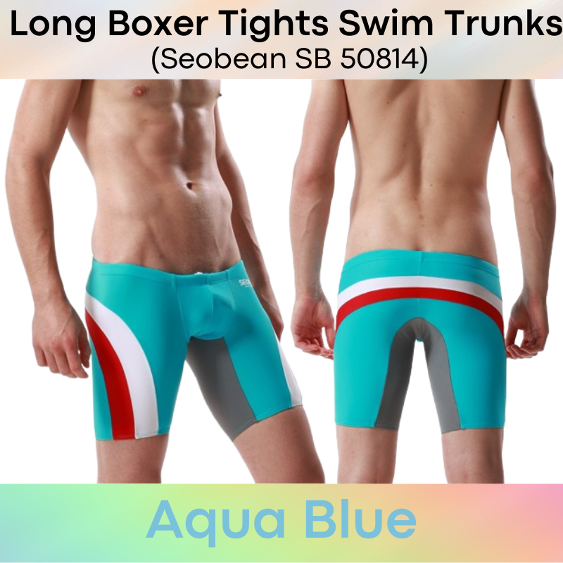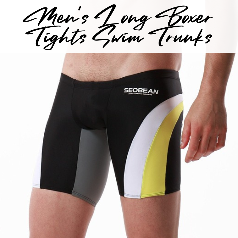 Made of nylon. Low waist, Long boxer tights swim trunks. Lines and insewn accentuate your assets and posterior.