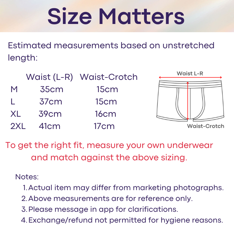Purchase in-app and collect in-store, located at Bukit Merah Central (S159836). Change the size on the spot subject to availability. Full privacy and discretion assured.