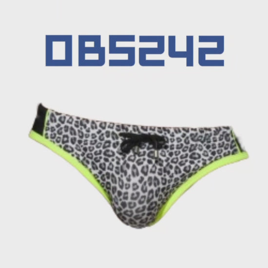 Made of polyester. Draw string design, with a 7cm side band, for those whom prefer a more conservative cut. Leopard print with a solid color rear. Removable modesty padding, assuring for those feeling conscious of their package.