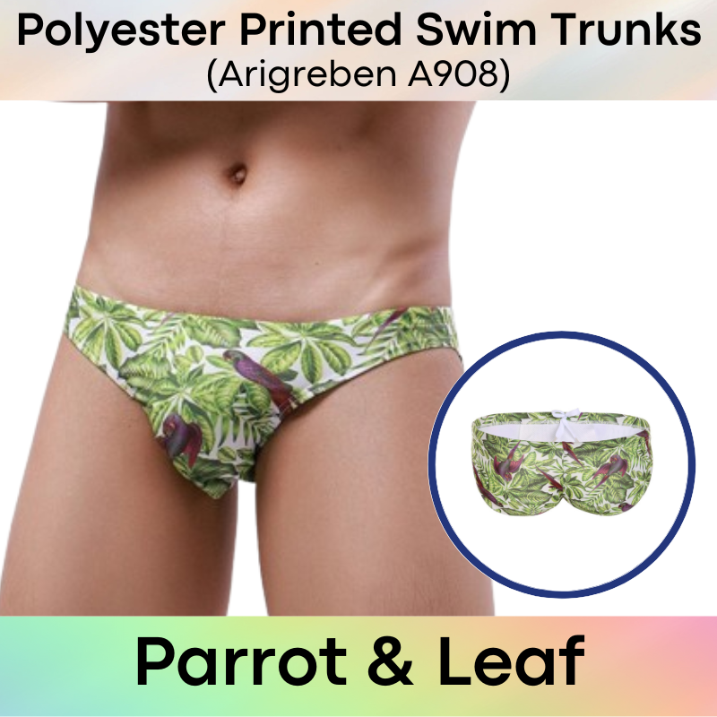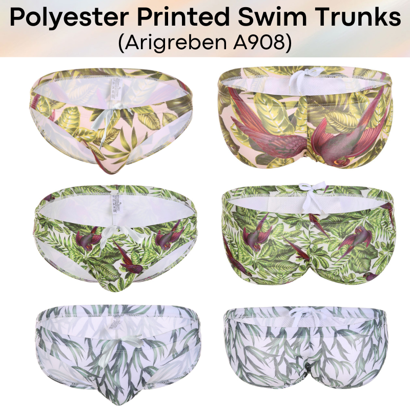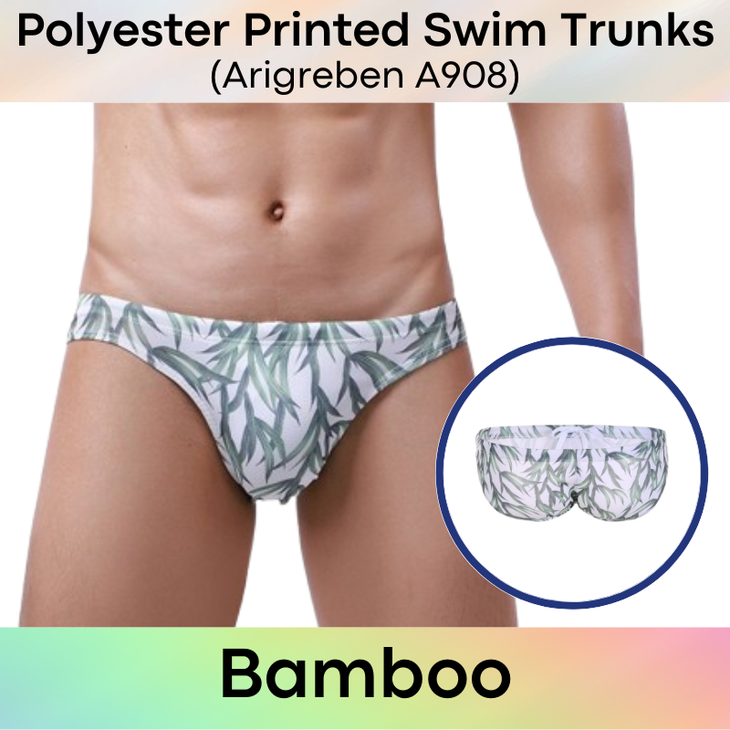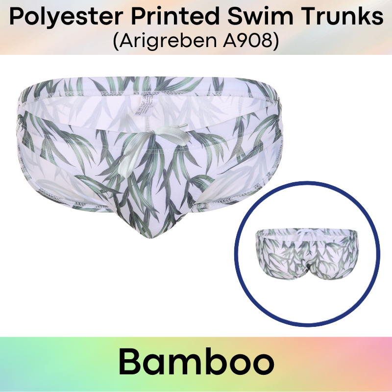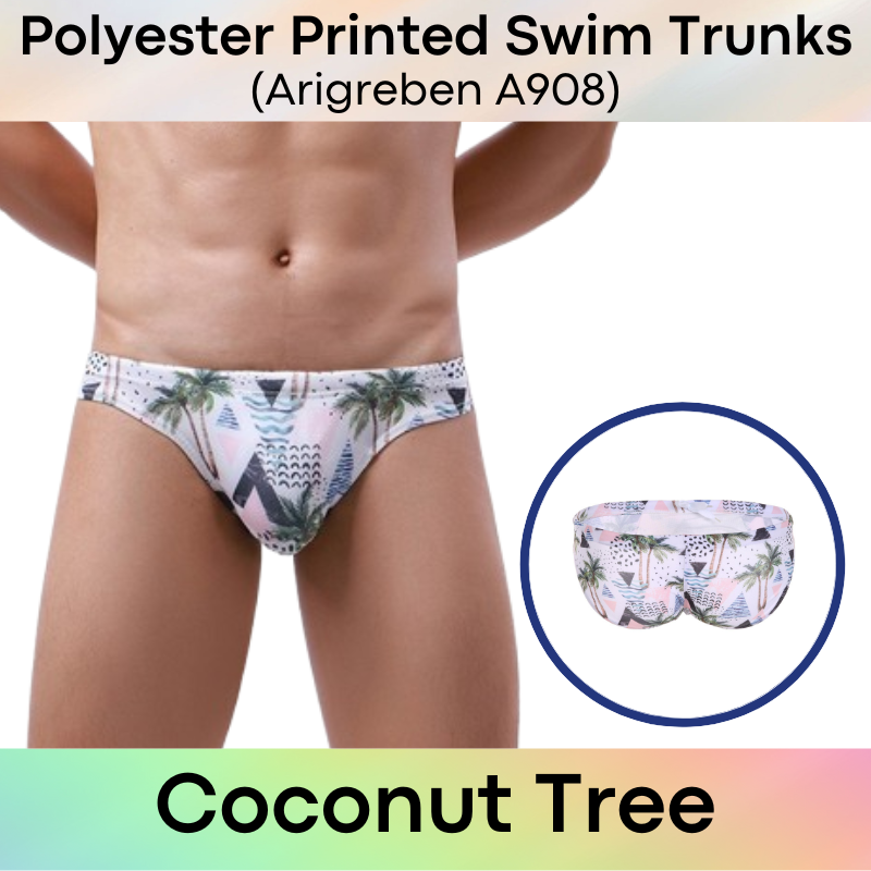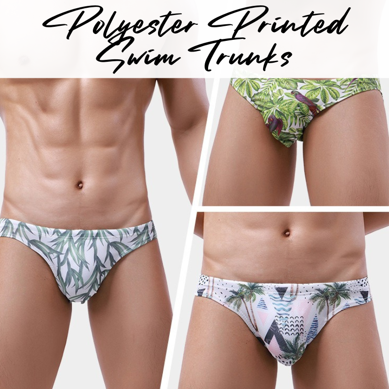 Made of polyester. Low rise swim trunks. Rear middle insewn line to accentuate your posterior. Drawstring for greater security.